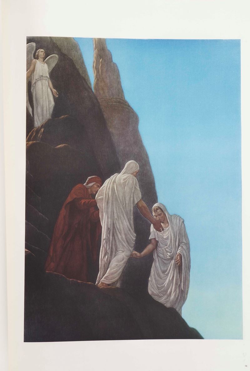 Esemplare n. ....... per ........ della monumentale edizione di soli 1.000 esemplari, progettata e illustrata nel corso di oltre 25 anni dal pittore Amos Nattini a partire dal 1919. L'Inferno venne stampano nel 1931, il Purgatorio nel 1936, mentre il Paradiso nel 1941.