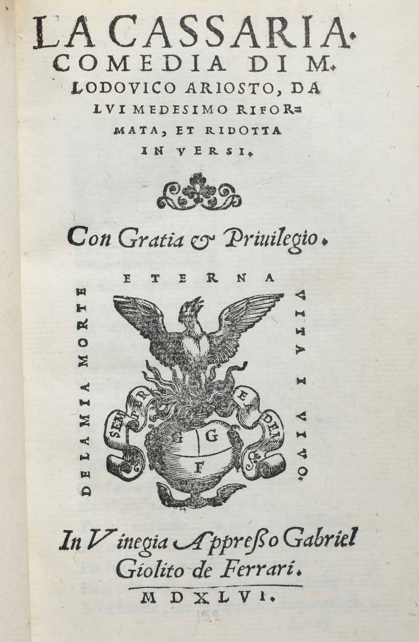 Ariosto Ludovico (1474-1533) La Cassaria In Vinegia, appresso Gabriel Giolito de Ferrari, 1546