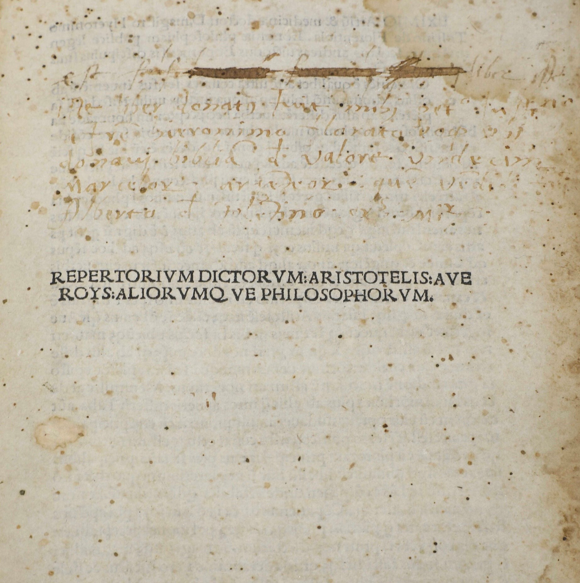 Aristotele, Averroè, altri Repertorium dictorum Aristotelis, Averoys, aliorumque philosophorum Bologna, Bazalerius de Bazaleriis [..]