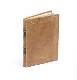 In-4° (mm 190x140). [64] cc. Rilegatura in piena pelle con cornice decorativa impressa, ex-libris nobiliare al contropiatto anteriore. Esemplare in discrete condizioni, con alcune gore e macchie per li più marginali e alcune note manoscritte.