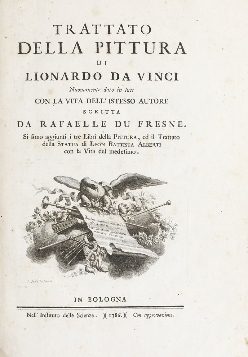 Da Vinci Leonardo (1452-1519) - Trichet du Fresne, Raphaël (1611-1661) Trattato della pittura... nuovamente dato in luce con la vita dello stesso autore scritta da Du Fresne...