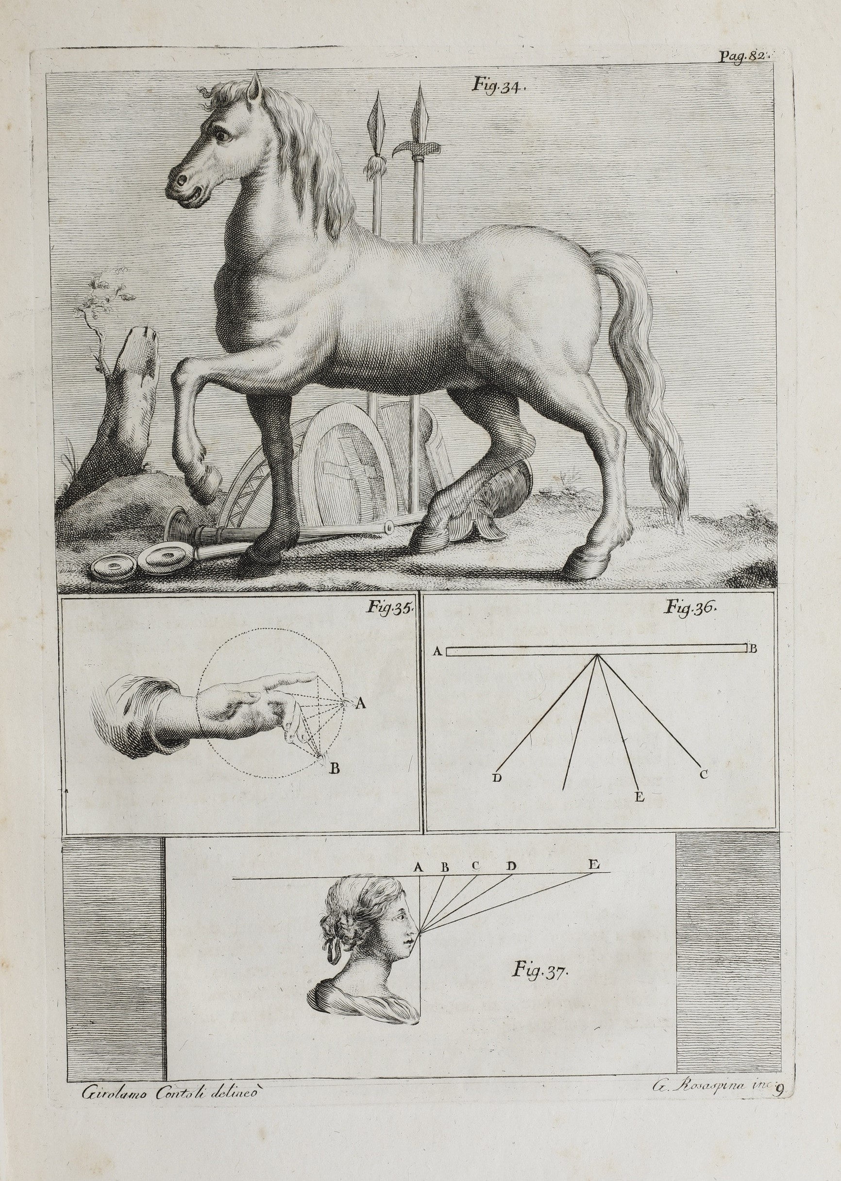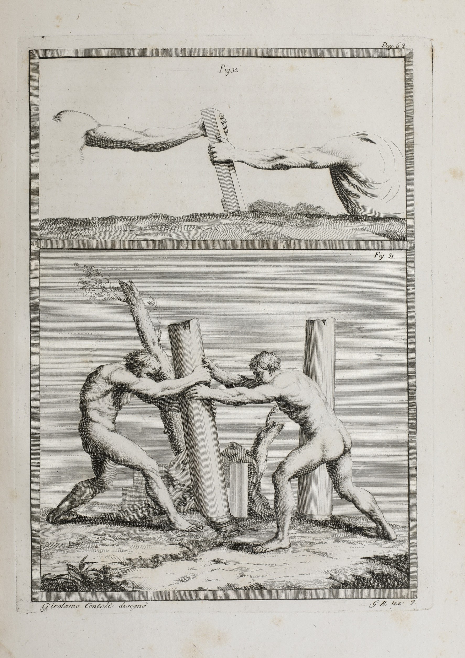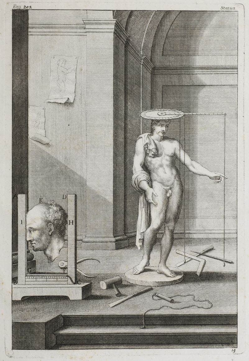 In-folio. Rilegatura coeva in mezza pelle e punte che presenta abrasioni da altri difetti. Mancanza di uno degli angoli esterni del piatto posteriore. Difetti marginali e fioriture con 19 tavole fuori testo