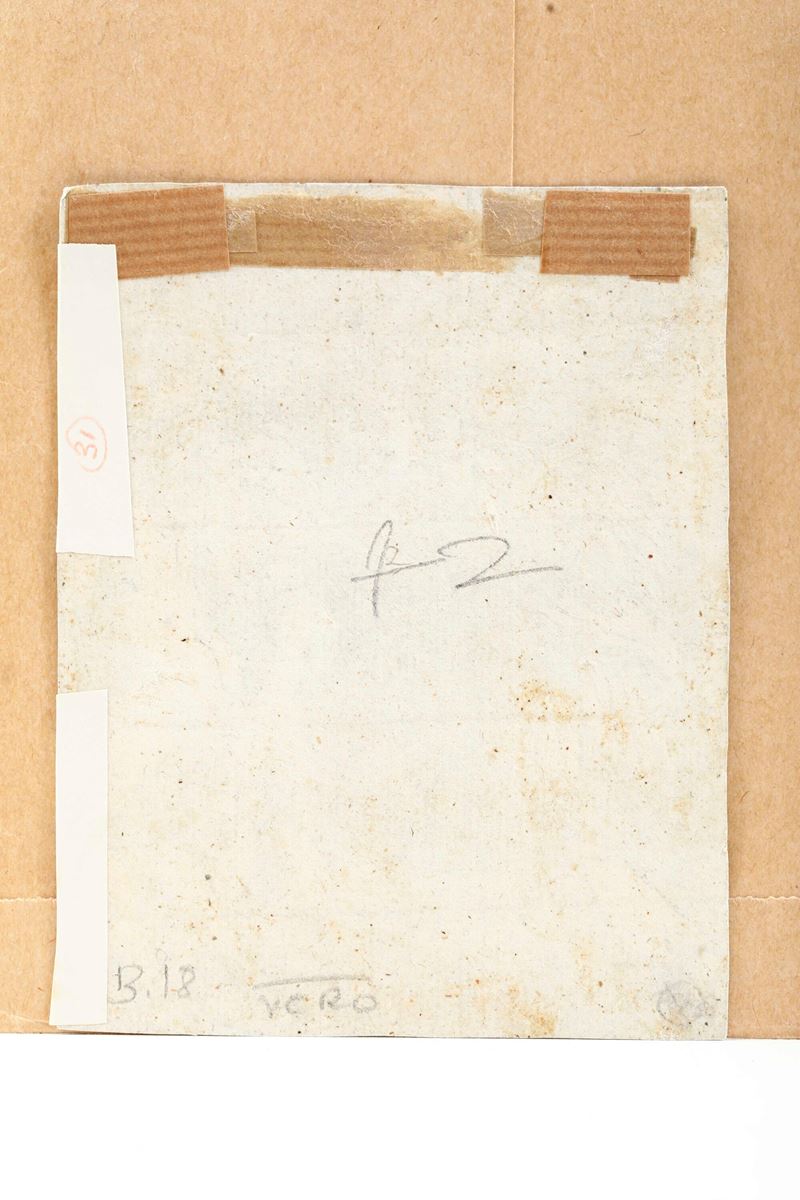 Una delle trentasette xilografie della serie della Piccola Passione su carta vergellata. Monogrammato e datato “1510” sulla lastra. Impressione un po' stanca, priva di margini. Rinforzi al verso ai margini superiore e laterale destro.