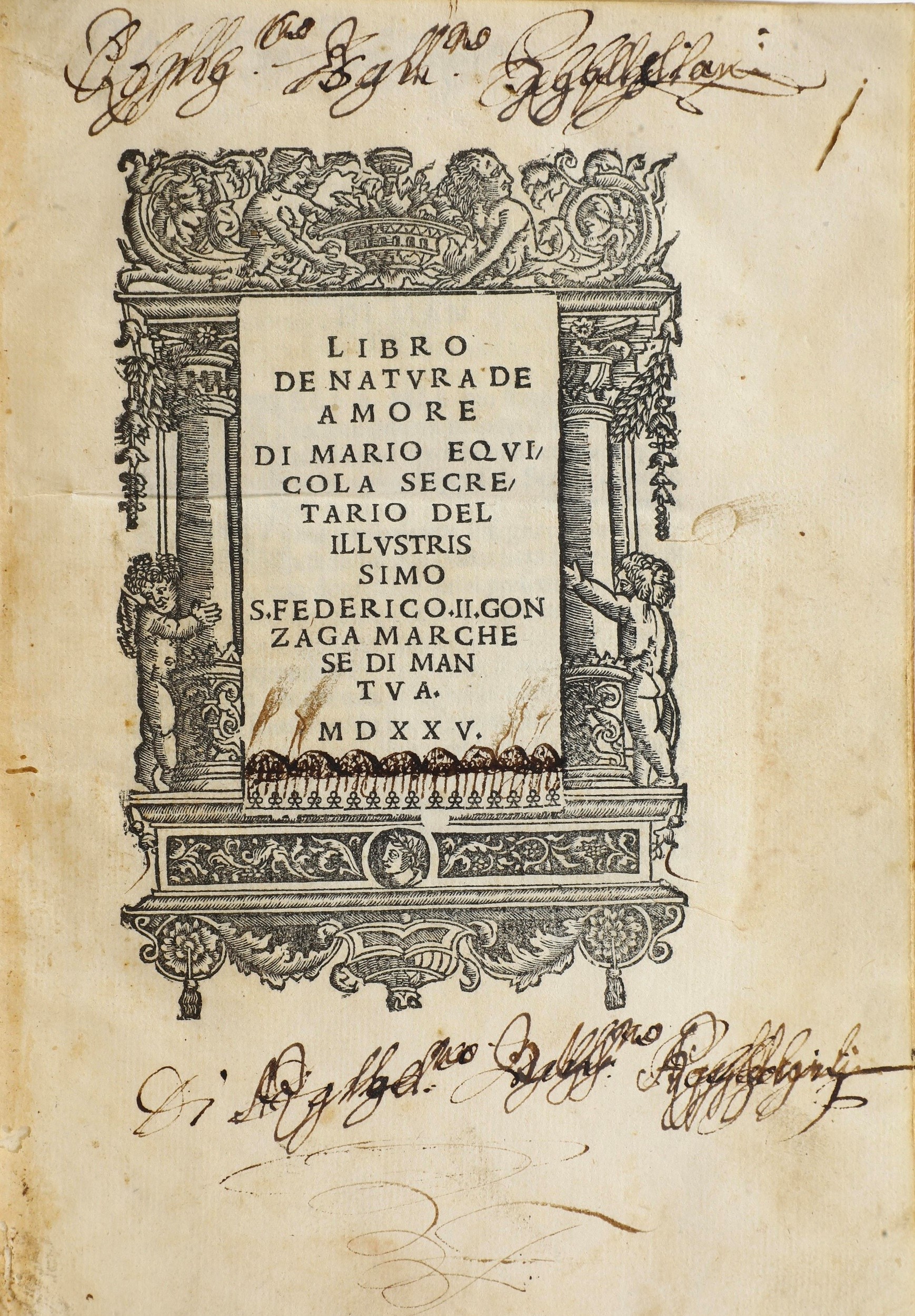 Equicola Mario (1470-1525) Libro de natura de amore.. Venetia, Lorenzo Lorio da Portes, 1525