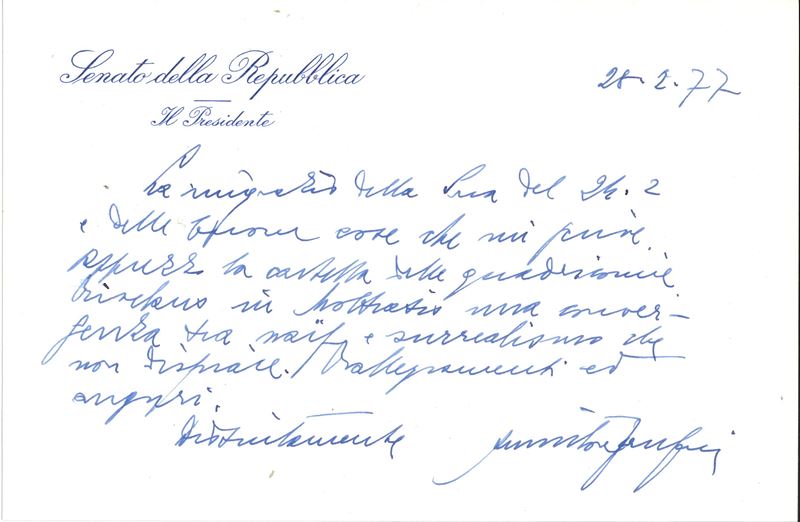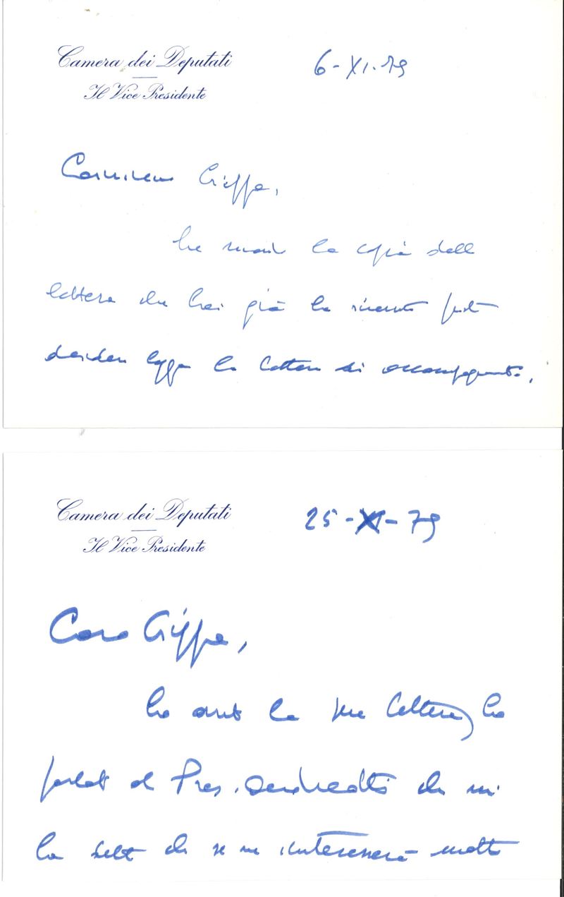 Grande raccolta di oltre trentacinque autografi, lettere, cartoline e biglietti di personaggi politici, intellettuali e [..]