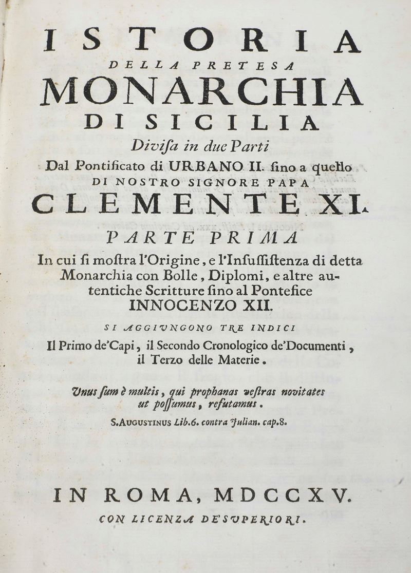 Istoria della pretesa monarchia di Sicilia divisa in due parti... In Roma, 1715