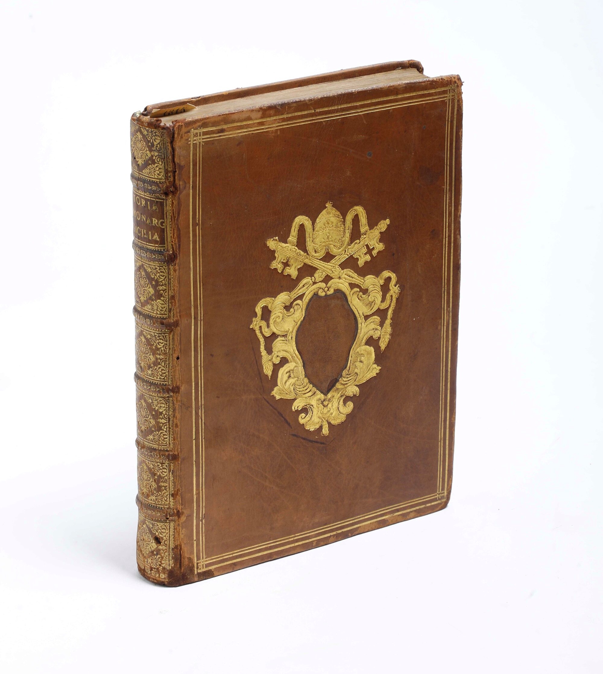 In-4° (cm 27x19). Legatura in piena pelle con cornice per stemma papale impressa in oro, dorso con tassello con titolo e decori fitomorfi, pure impressi in oro; tagli marmorizzati. Bell'esemplare fresco e marginoso.