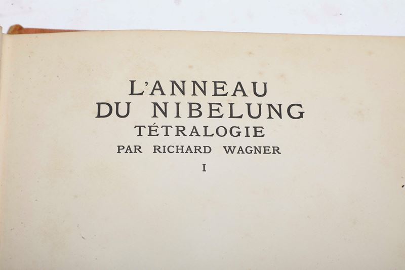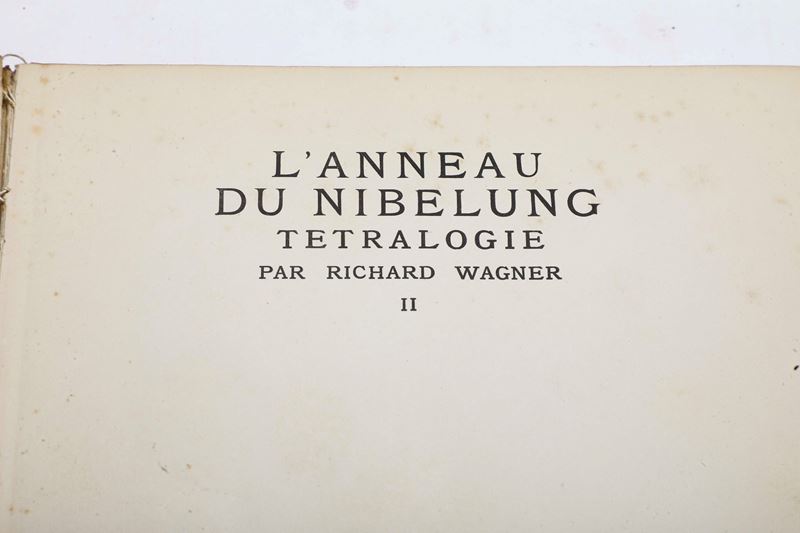 3. Siegfried et le Crépuscule des dieux par Richard Wagner...Paris, Hachette e Cie, pregevoli illustrazioni fuori testo a colori di Arthur Rackman, legatura in tela con frontespizio impresso in oro al piatto anteriore, titolo e autore impressi in oro al dorso;