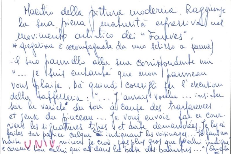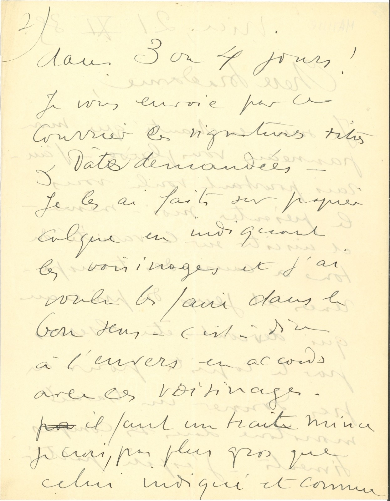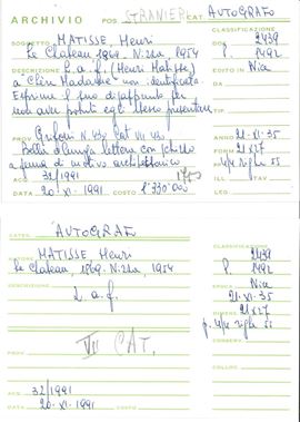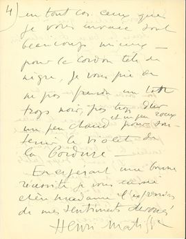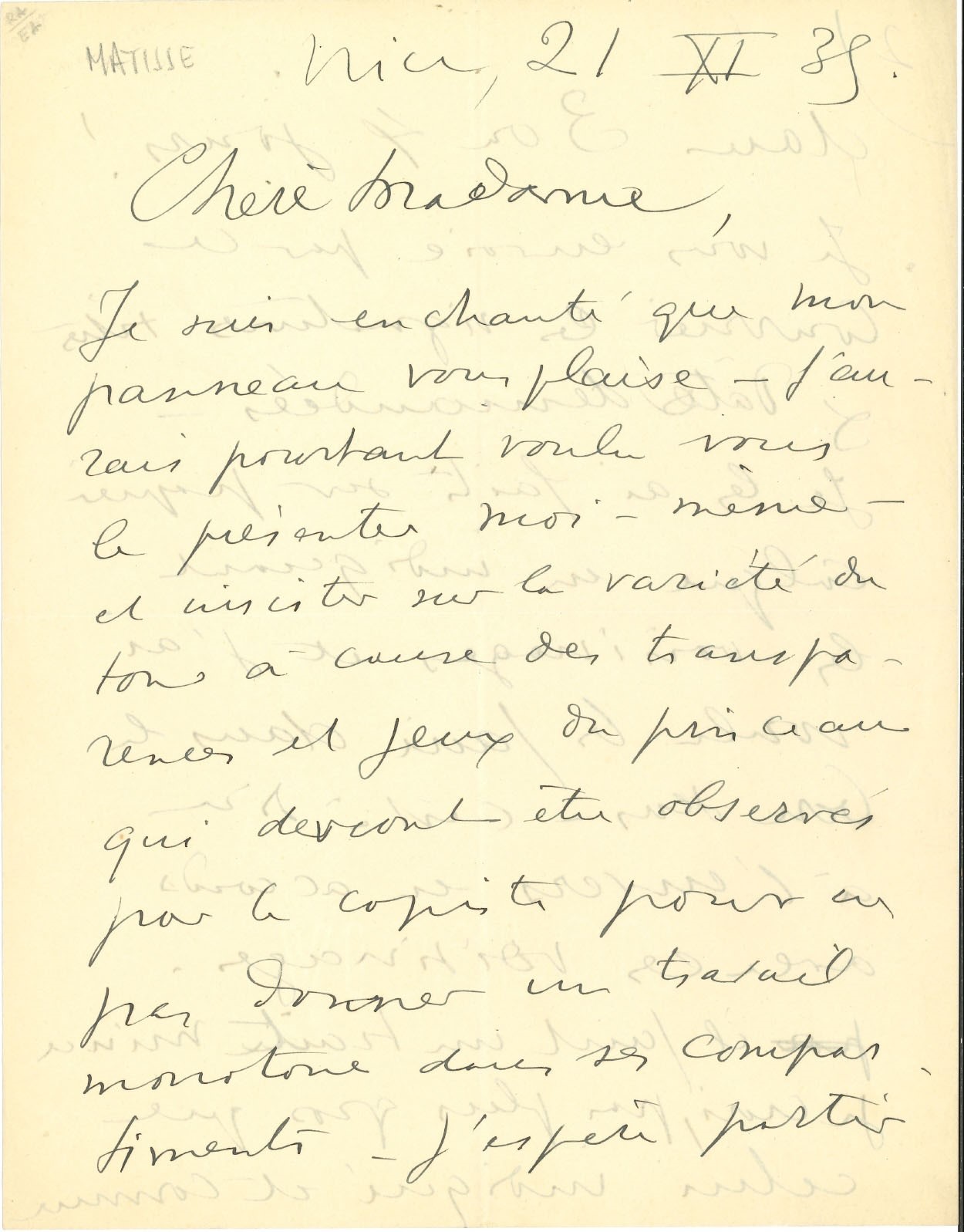 Matisse Henri (1869 - 1954) Lettera autografa, indirizzata a una non meglio identificata “Chere Madame”.