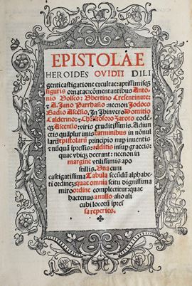 Naso Publius Ovidius (43 a.C. - 17 d.C.) Epistolae Heroides.. Venetiis, Ioannis Tacuini de Tridino, 1522
