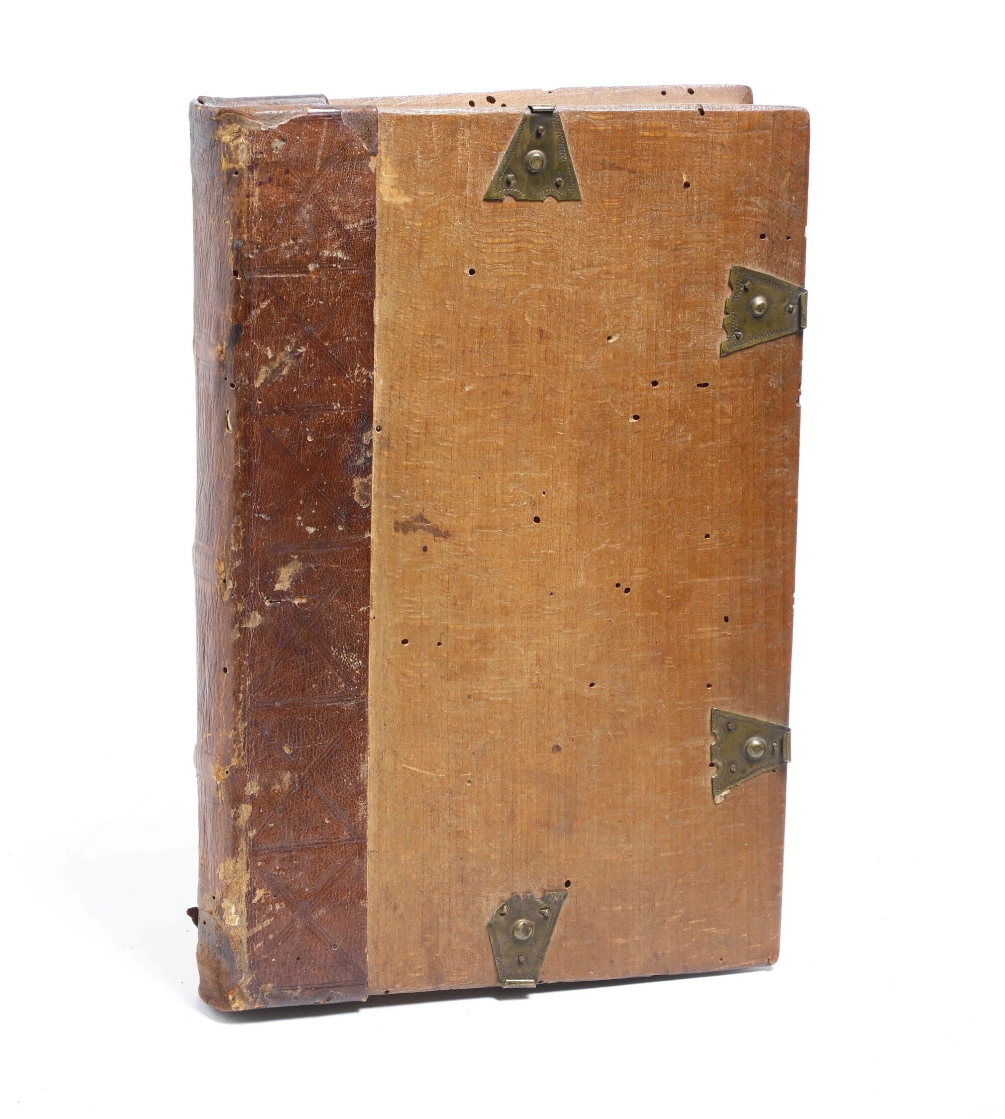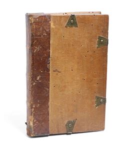In-4° grande. (mm 305x206). Rilegatura in stile monastico con i piatti in legno, ex libris nobiliare sulla prima carta (usure, fori di tarlo, fermagli mancanti). Raffinate illustrazioni nel testo, ricca cornice decorativa al frontespizio, iniziali xilografiche. Esemplare fresco, alcuni fori di tarlo a spillo, restauro al margine inferiore del frontespizio senza perdita di testo, qualche nota manoscritta.
