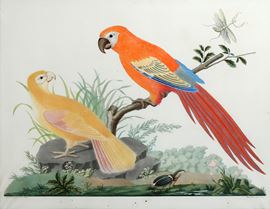 Raineri Vittorio (1797-1869) da Raineri Antonio (1765-1826) Due pappagalli, una mantide in volo e uno scarabeo