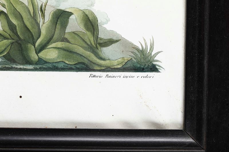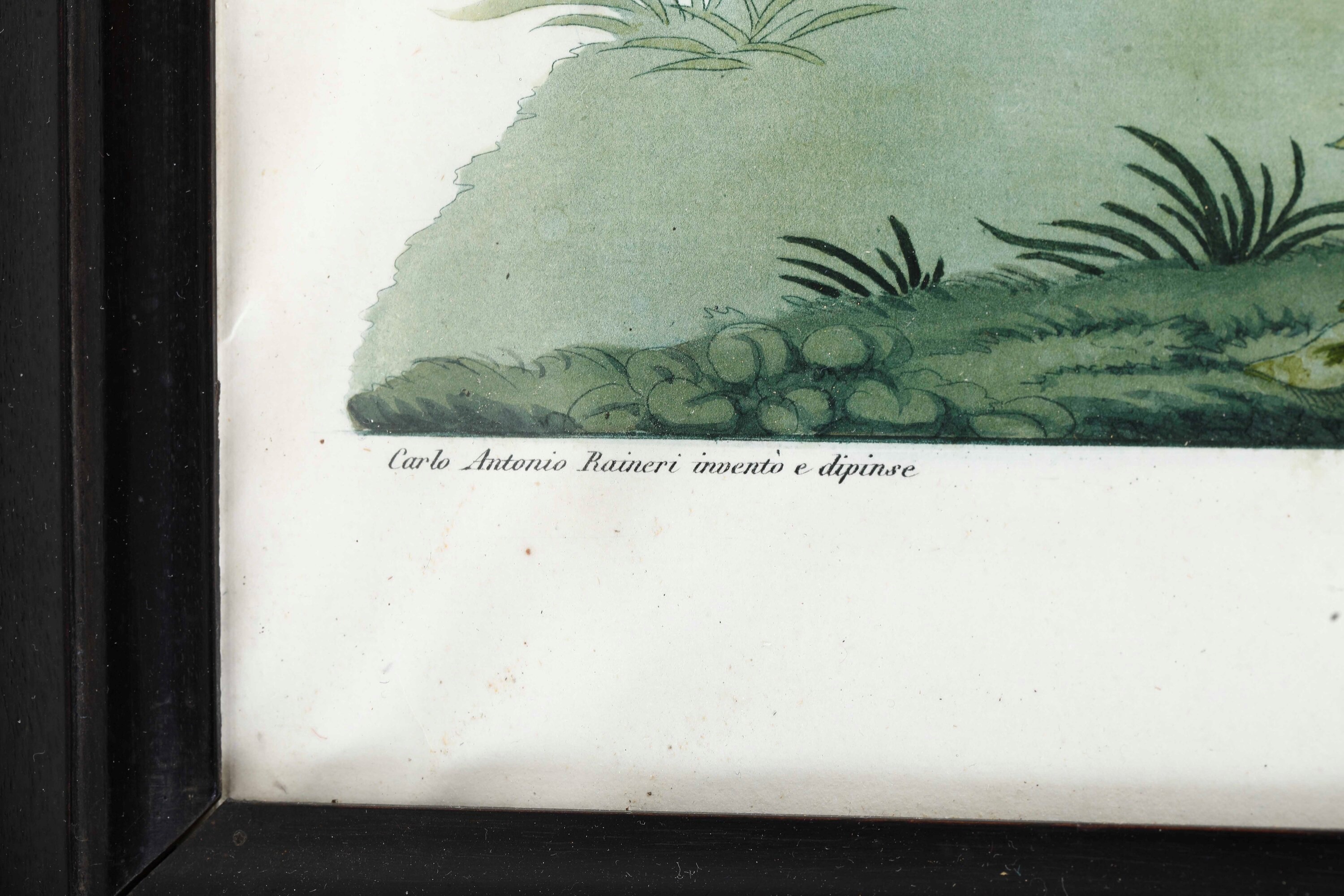 Acquatinta acquarellata. Entro cornice.