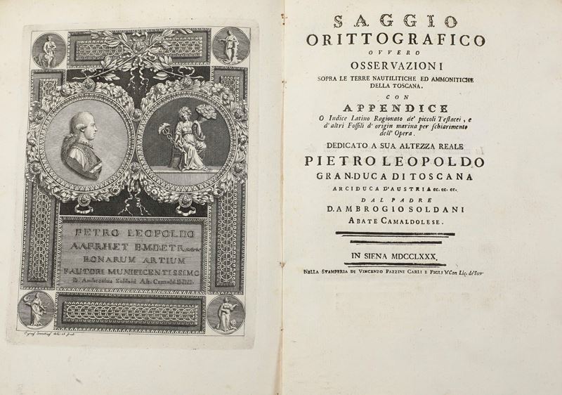 Soldani Ambrogio Saggio orittografico, ovvero osservazione sopra le terre nautilitiche ed ammonitiche della toscana... In Siena, nella stamperia di Vincenzo Pazzini, 1780