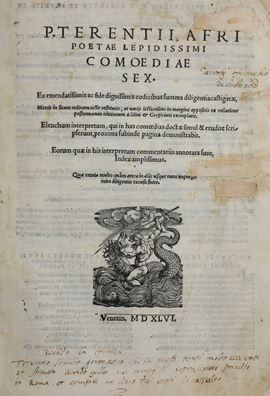 Terenzio Publio Afro (190/185 a.C. circa - 159 a.C.) Comediae sex... Venezia, Apud Venturinum Russinellum, 1546