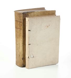 In-folio. Rilegatura coeva in cartoncino alla rustica (mancanza di una piccola porzione al piatto anteriore e al dorso). Alcuni restauri al frontespizio e a poche carte interne. Annotazioni manoscritte di mano coeva al frontespizio