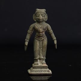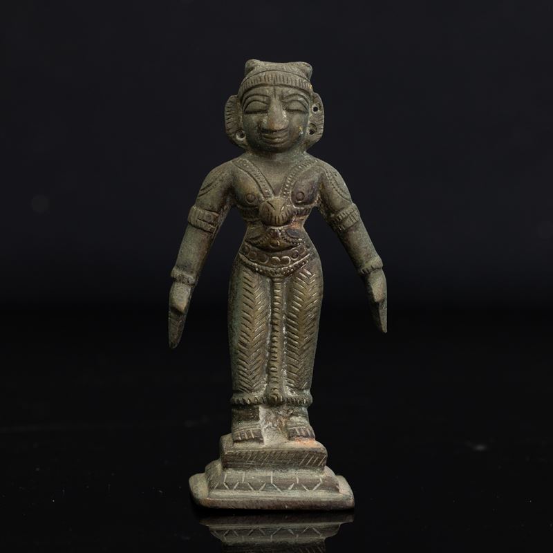 Figura in bronzo raffigurante divinità stante, India, XIX secolo