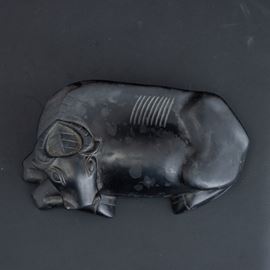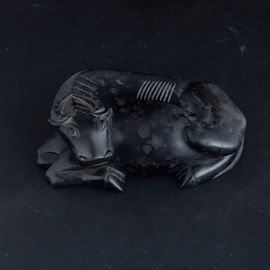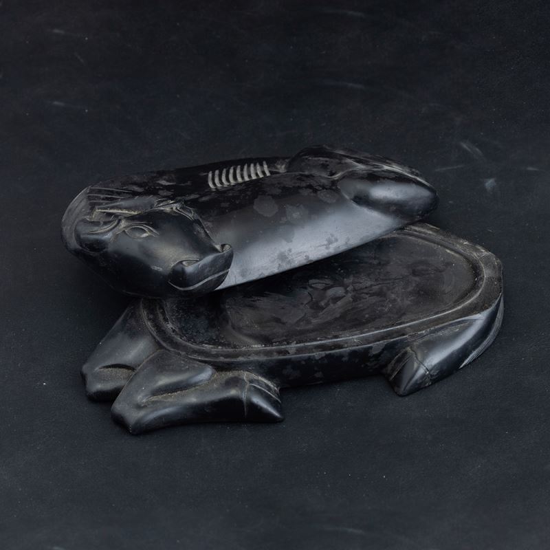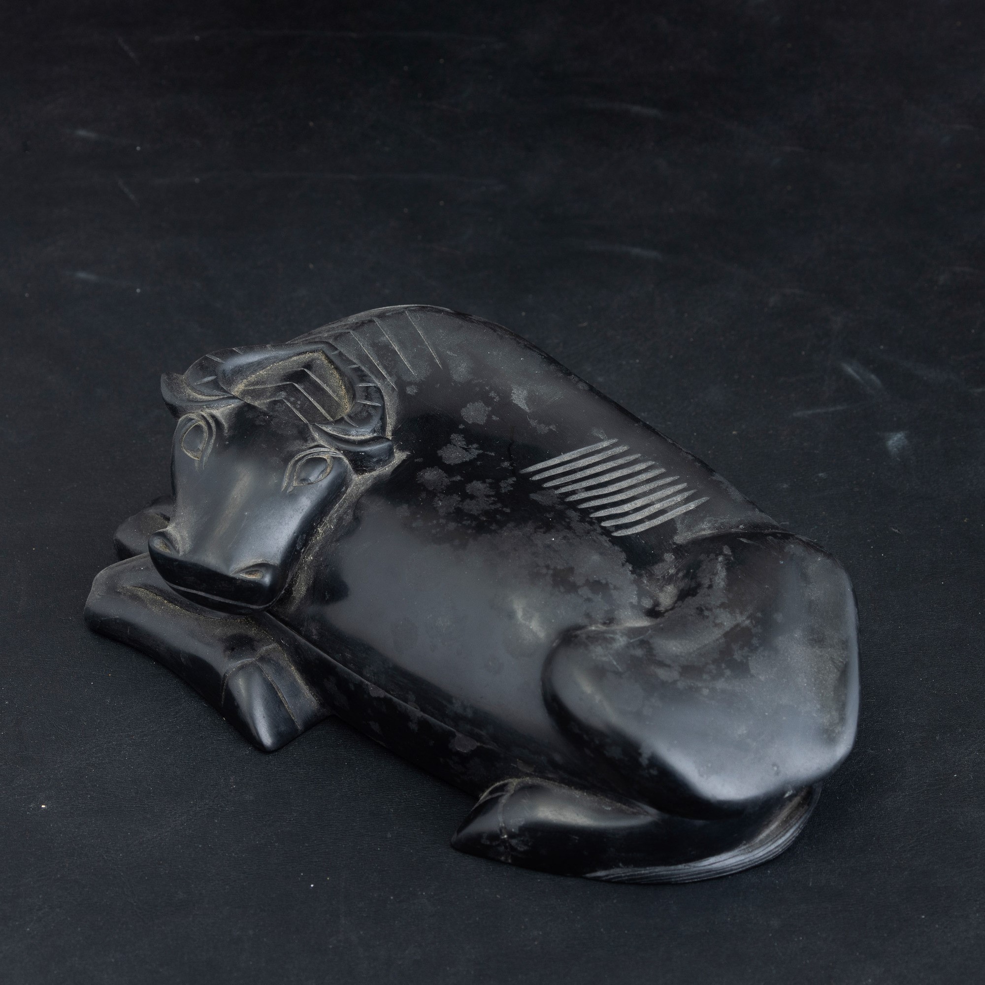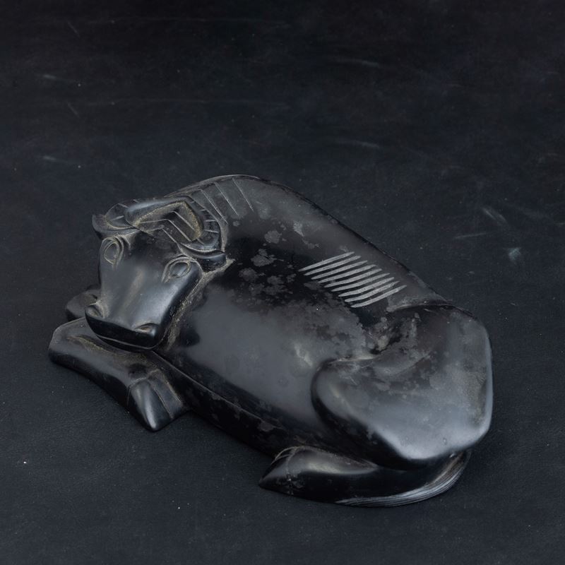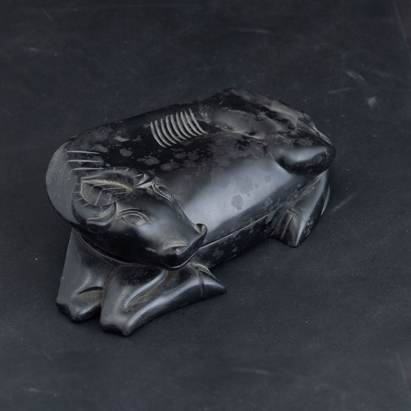 Scatola raffigurante bue in ceramica nera, Cina, Dinastia Qing, XIX secolo