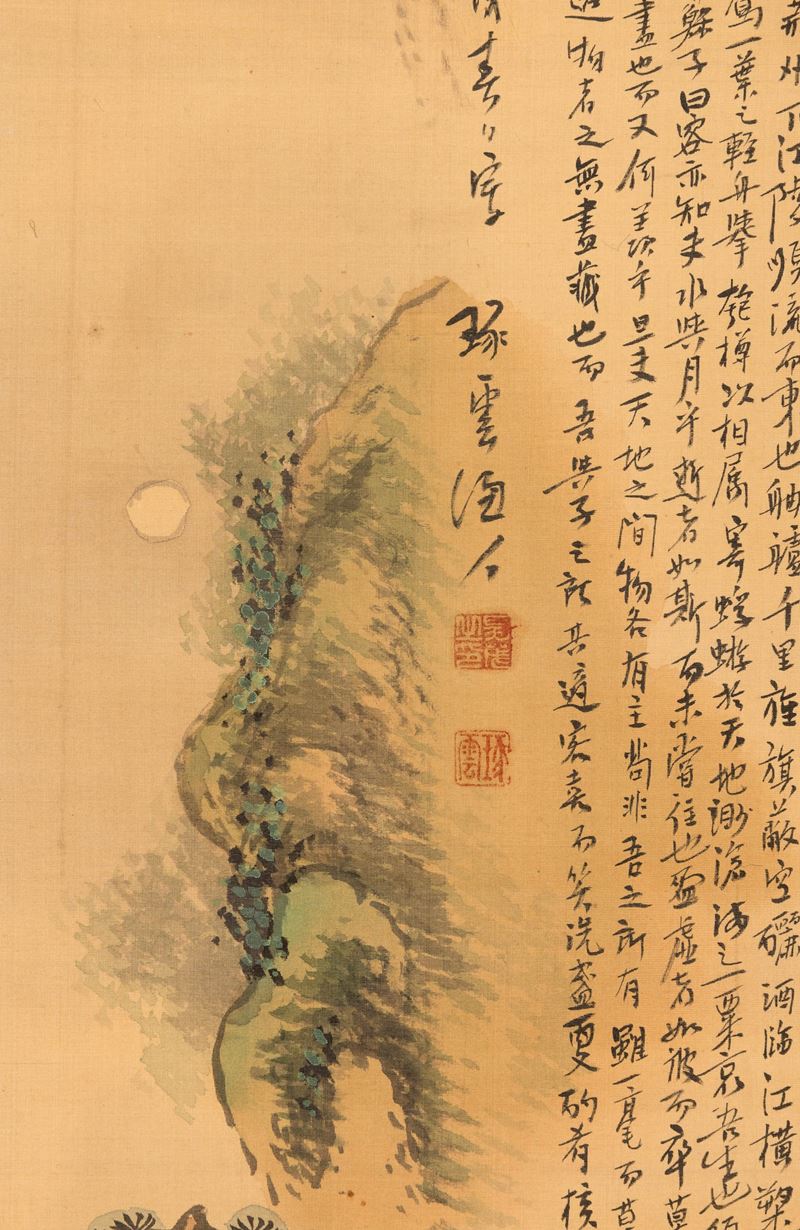 Scroll with river scene and boat with the poem ‘Chibitu’ (Song Dynasty), China, 20th century