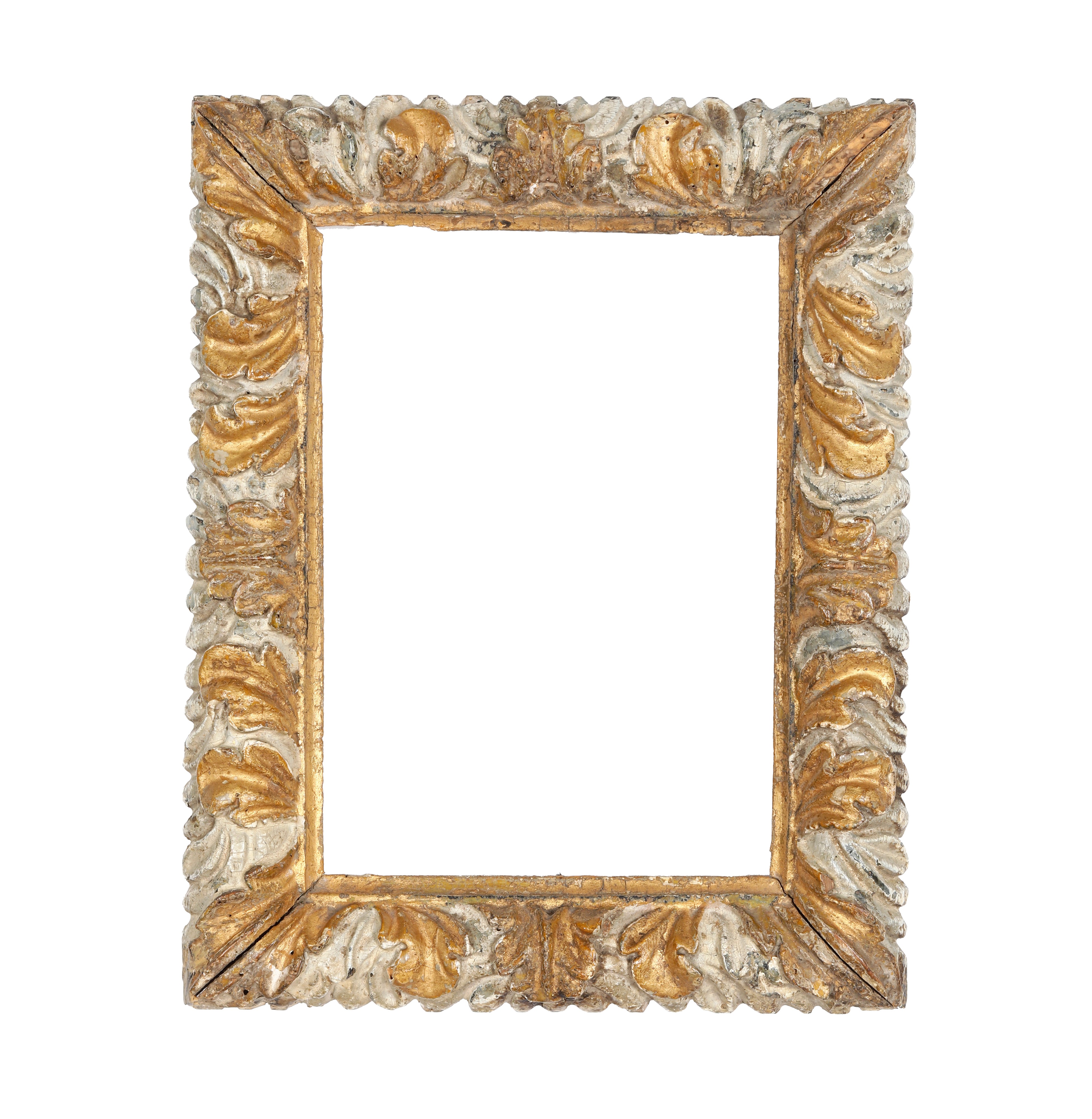 Coppia di conici in legno intagliato, dipinto e dorato. Italia (?) XVII secolo