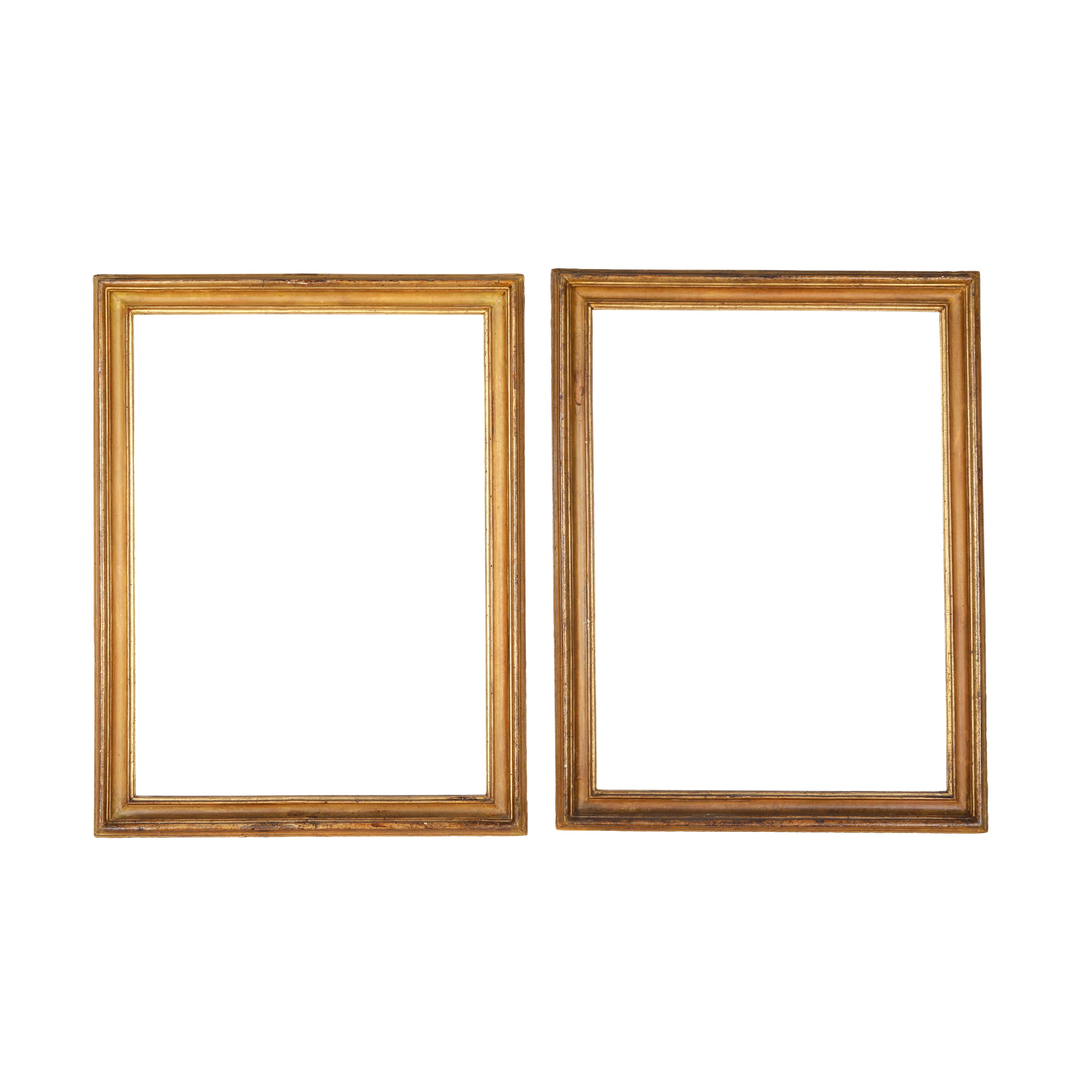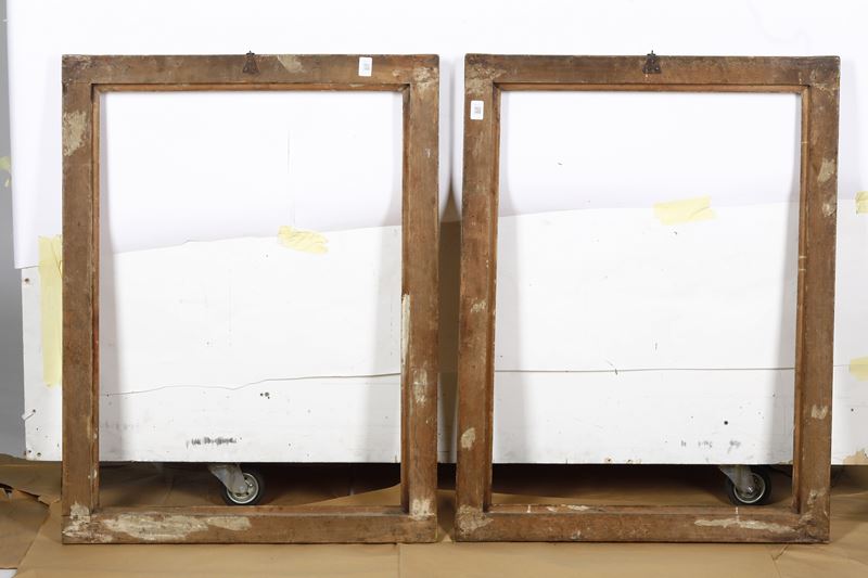 Coppia di cornici a sagoma "Salvator Rosa" in legno laccato e dorato. Roma XVIII secolo