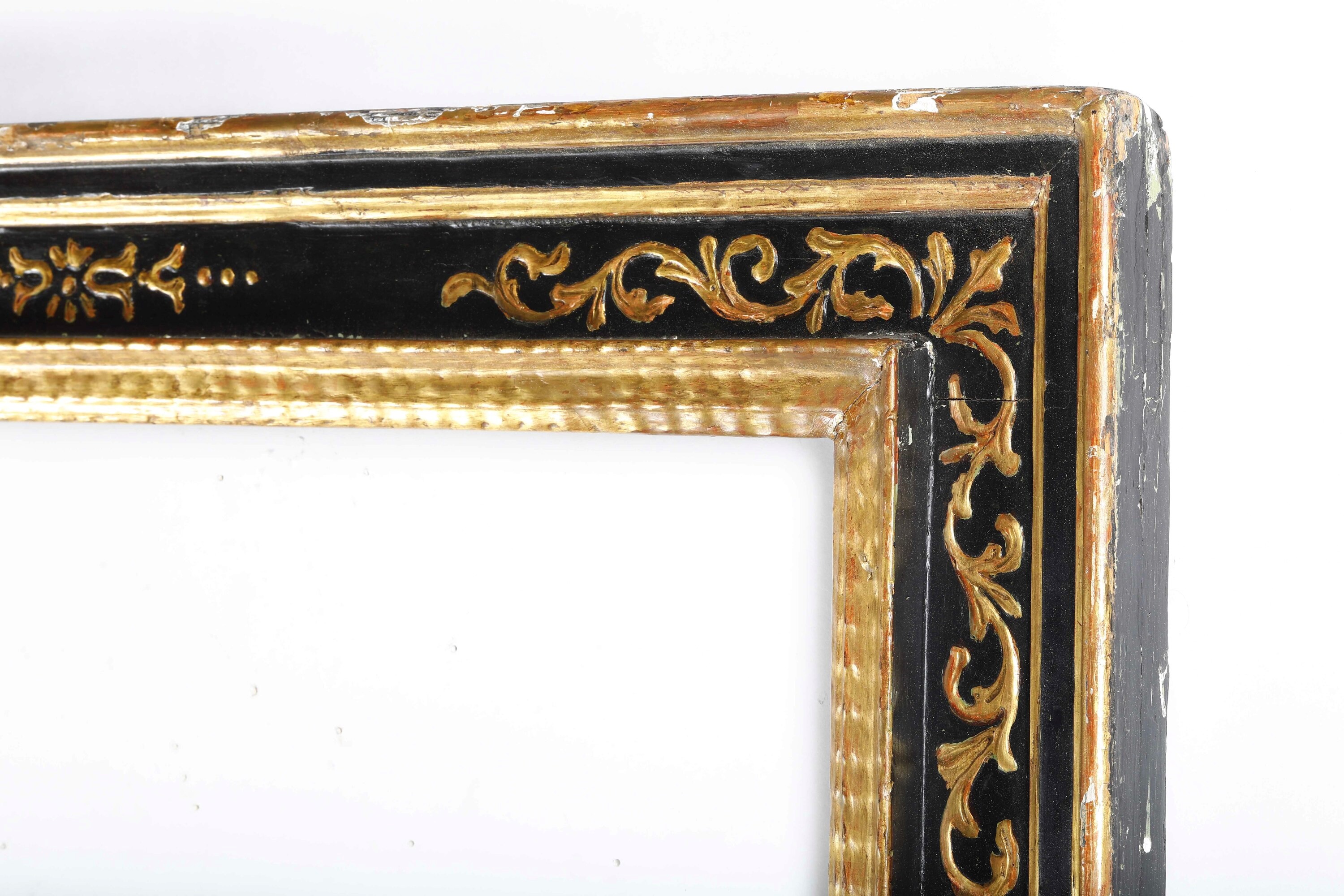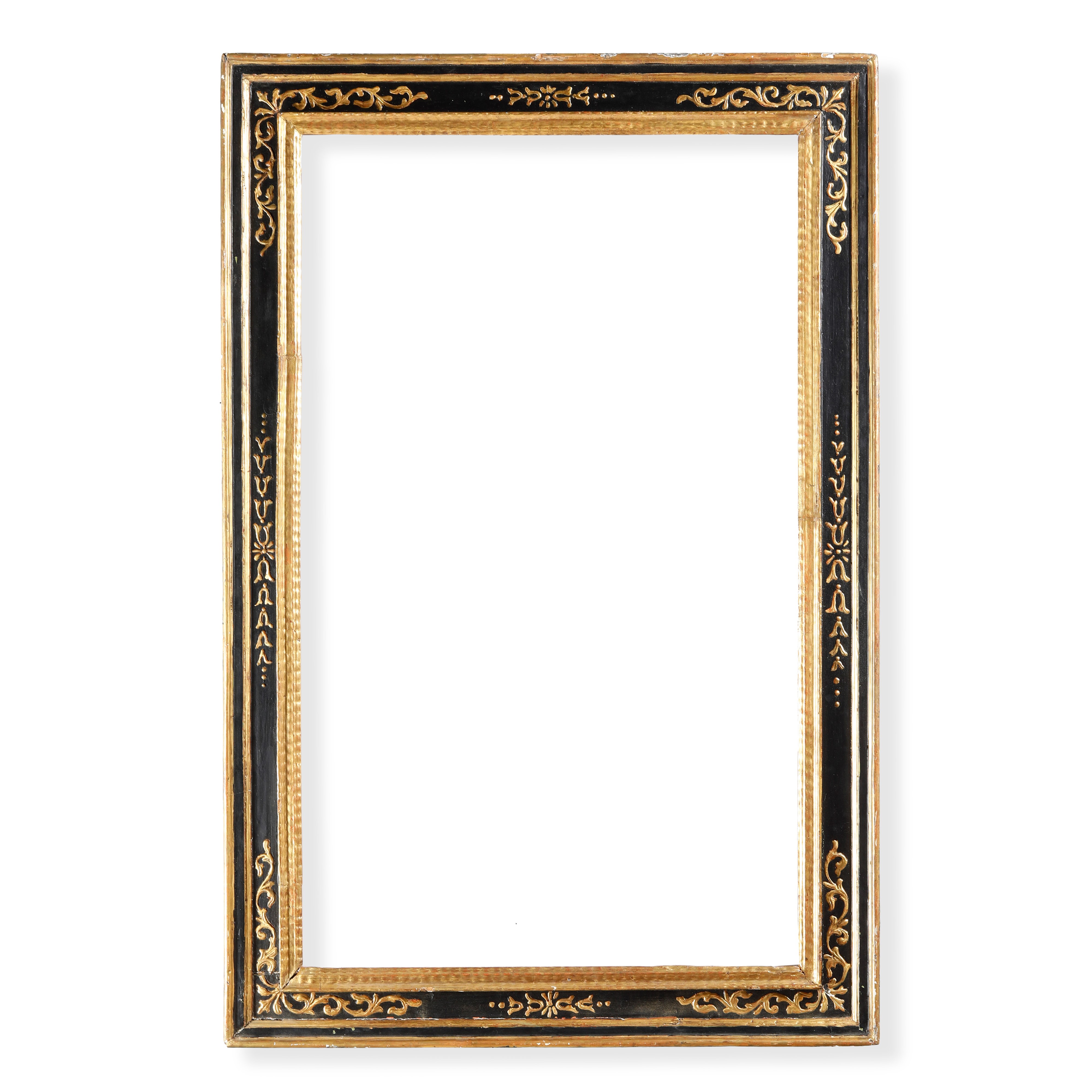 Cornice a cassetta in legno ebanizzato con decori in dorati. Italia Centrale, XVII secolo