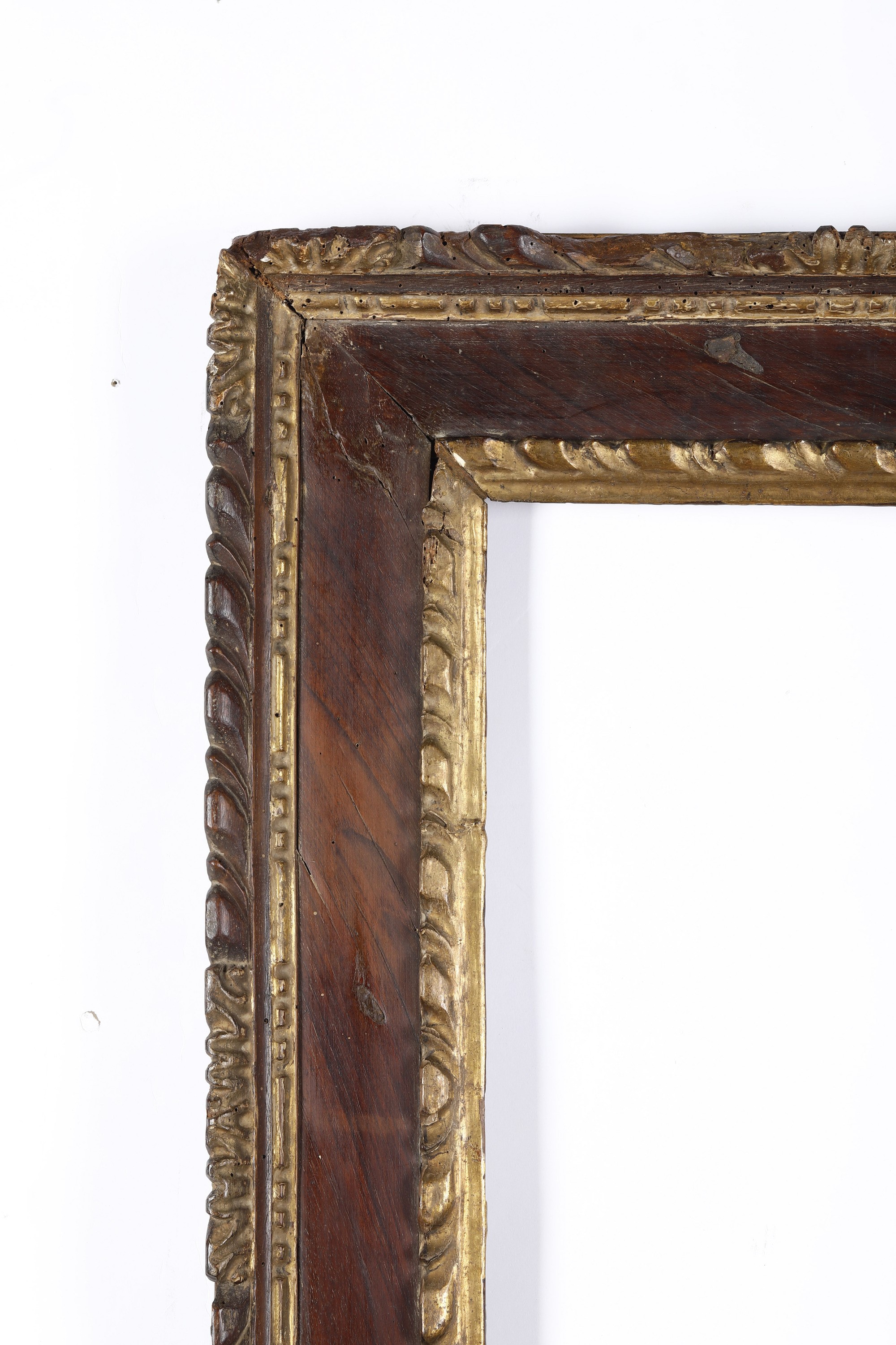 Cornice a cassetta lastronata in noce e dorata. Genova XVII-XVIII secolo