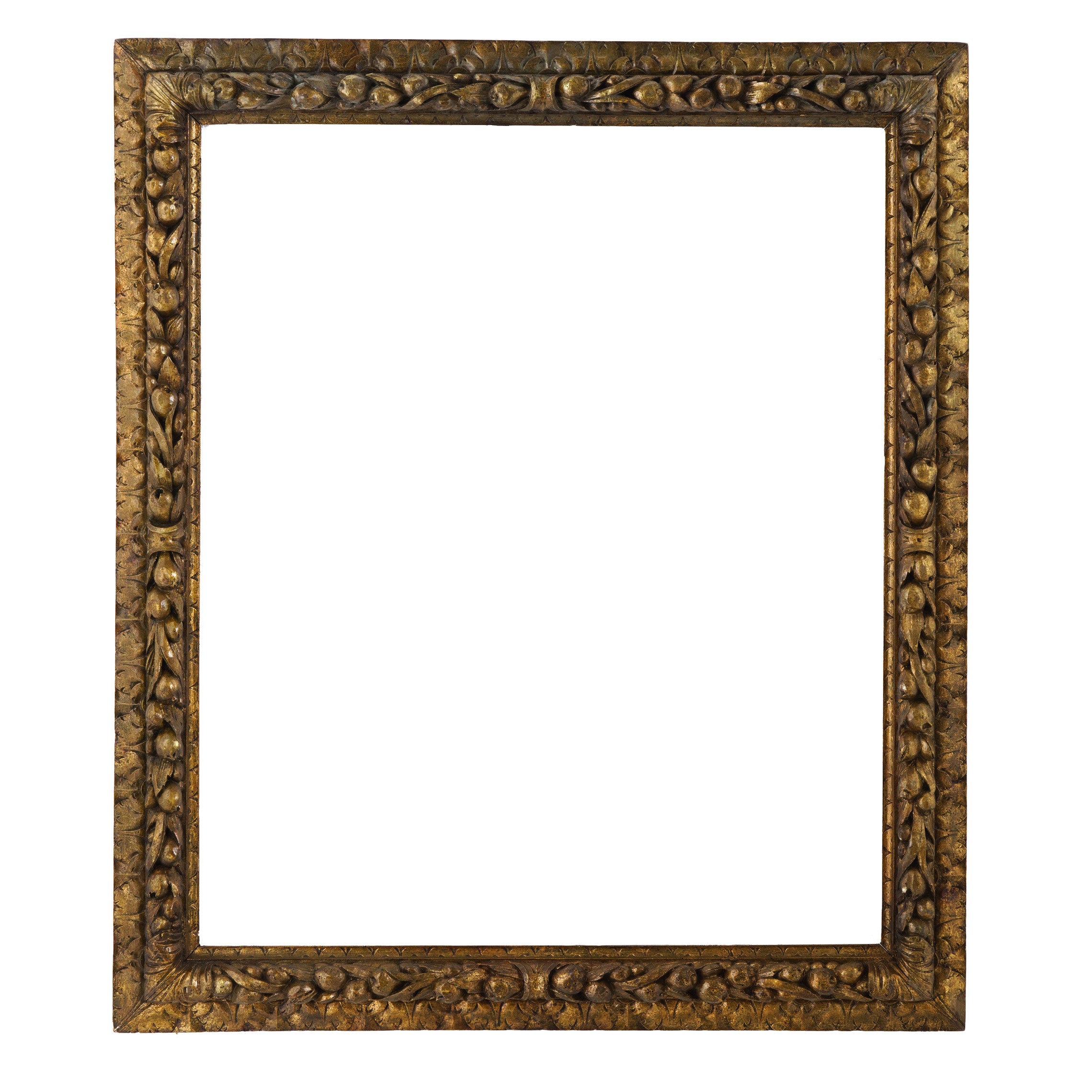 Cornice in legno intagliato a frutti e foglie susseguenti. Piemonte XVII-XIX secolo