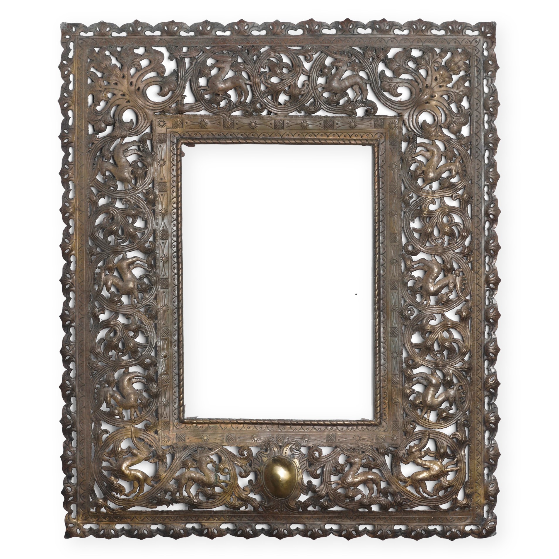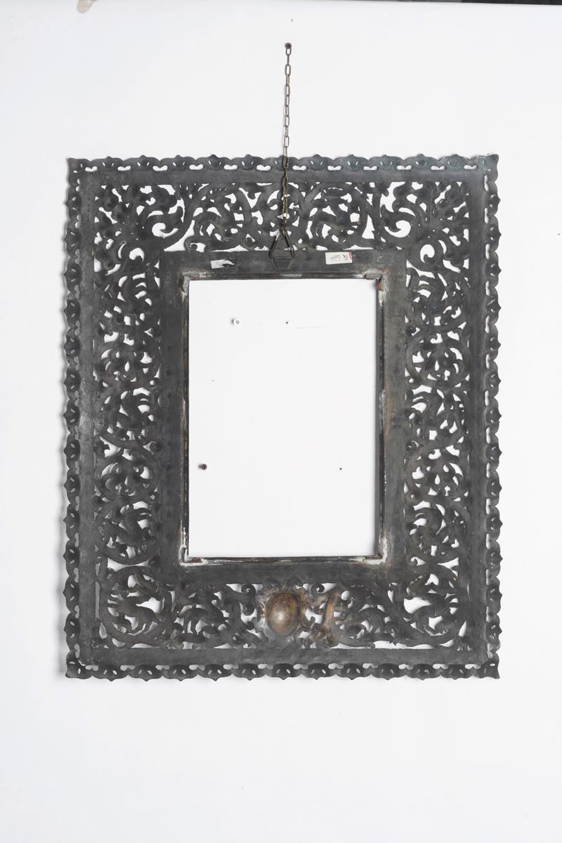 Cornice traforata in metallo (ottone?). XIX secolo