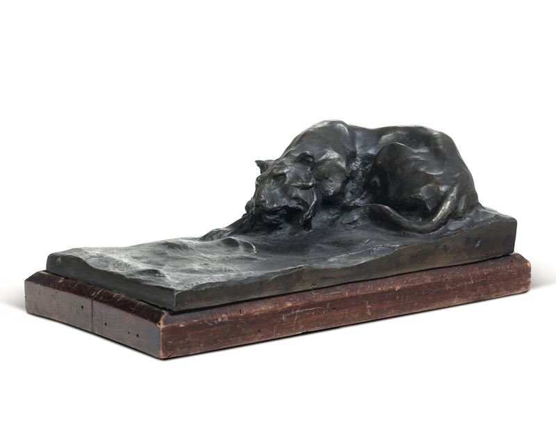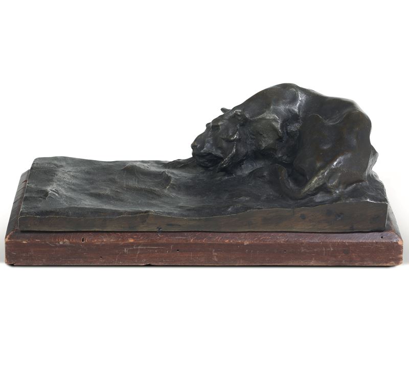 Bronzo fuso e patinato, base in legno