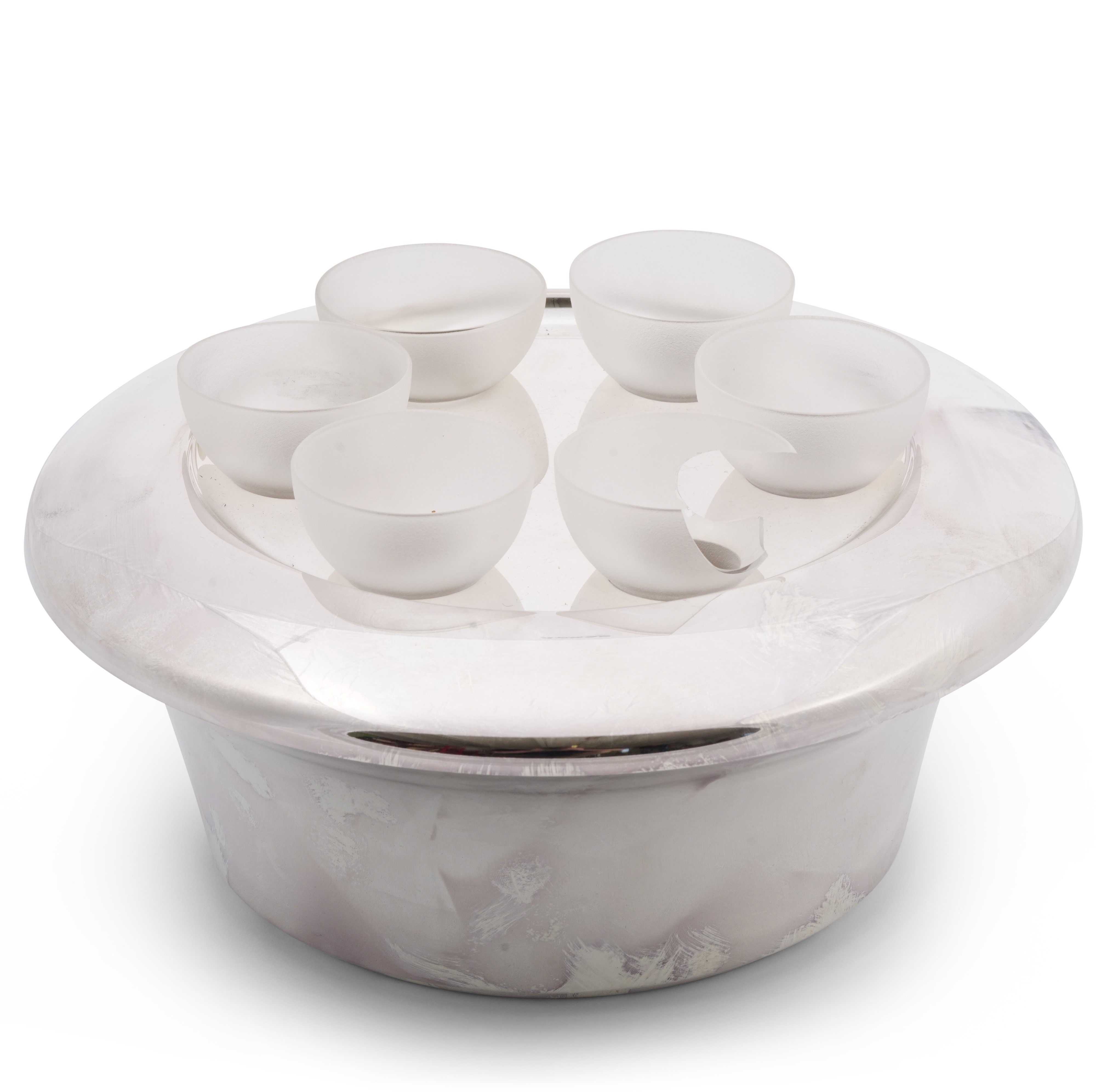 Struttura in metallo e bicchieri in vetro. Difetti.