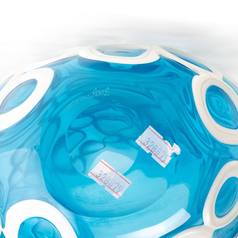 Kyklos drop vase in pale blue blown glass with 'lattimo' (milky) loop applications.
