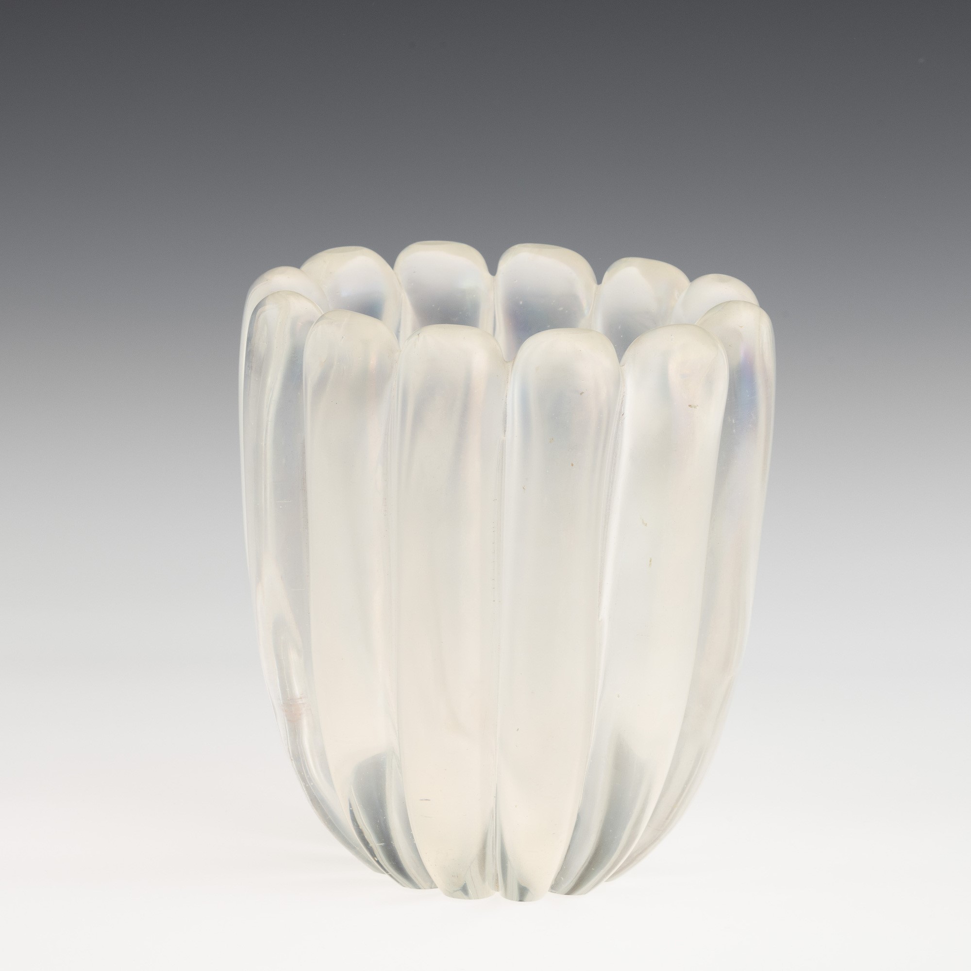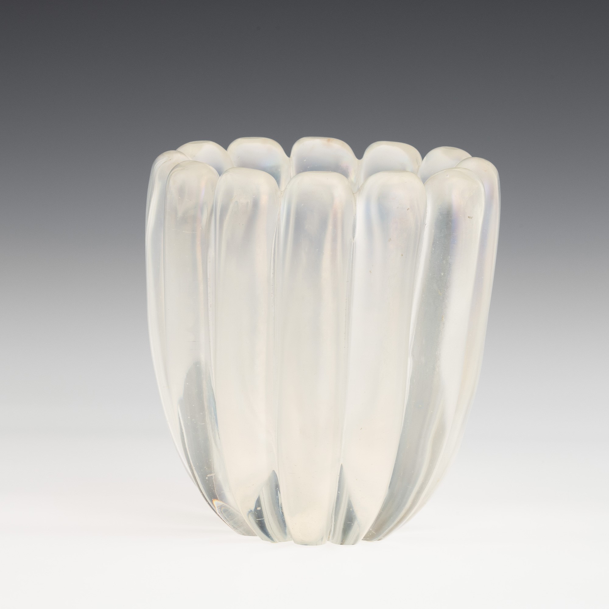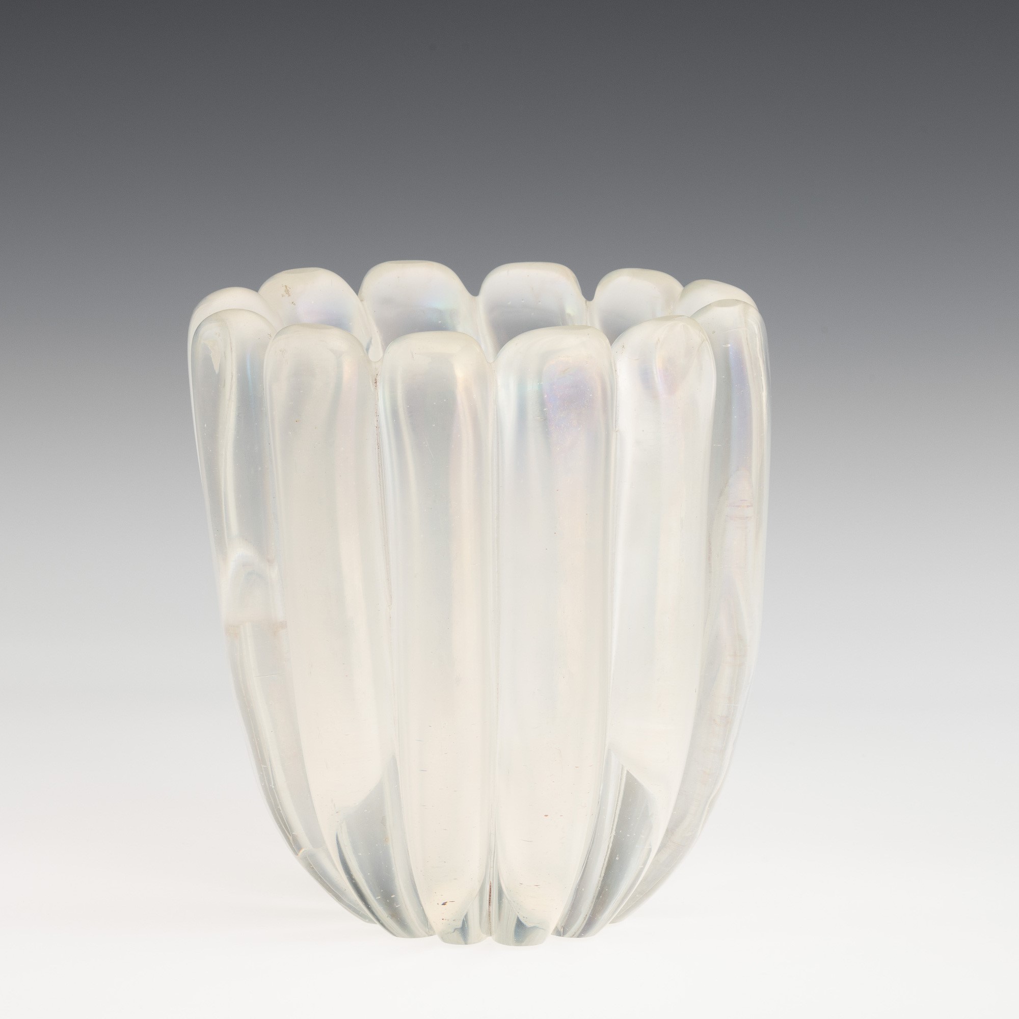 A Grosse Costolature series oval section vase in heavy iridescent glass.