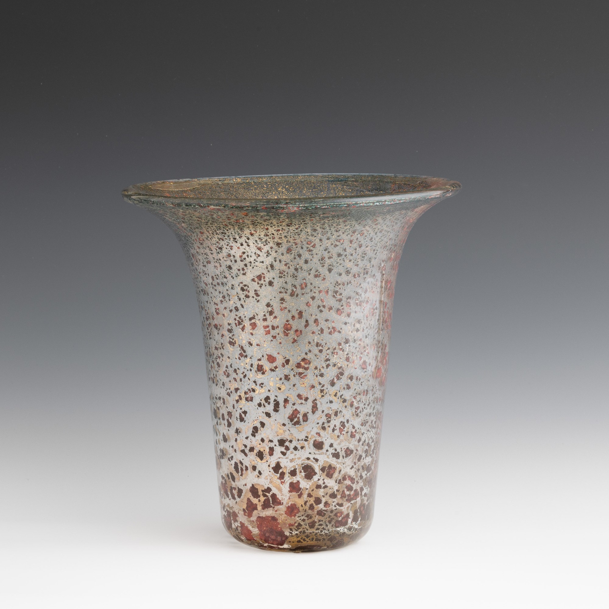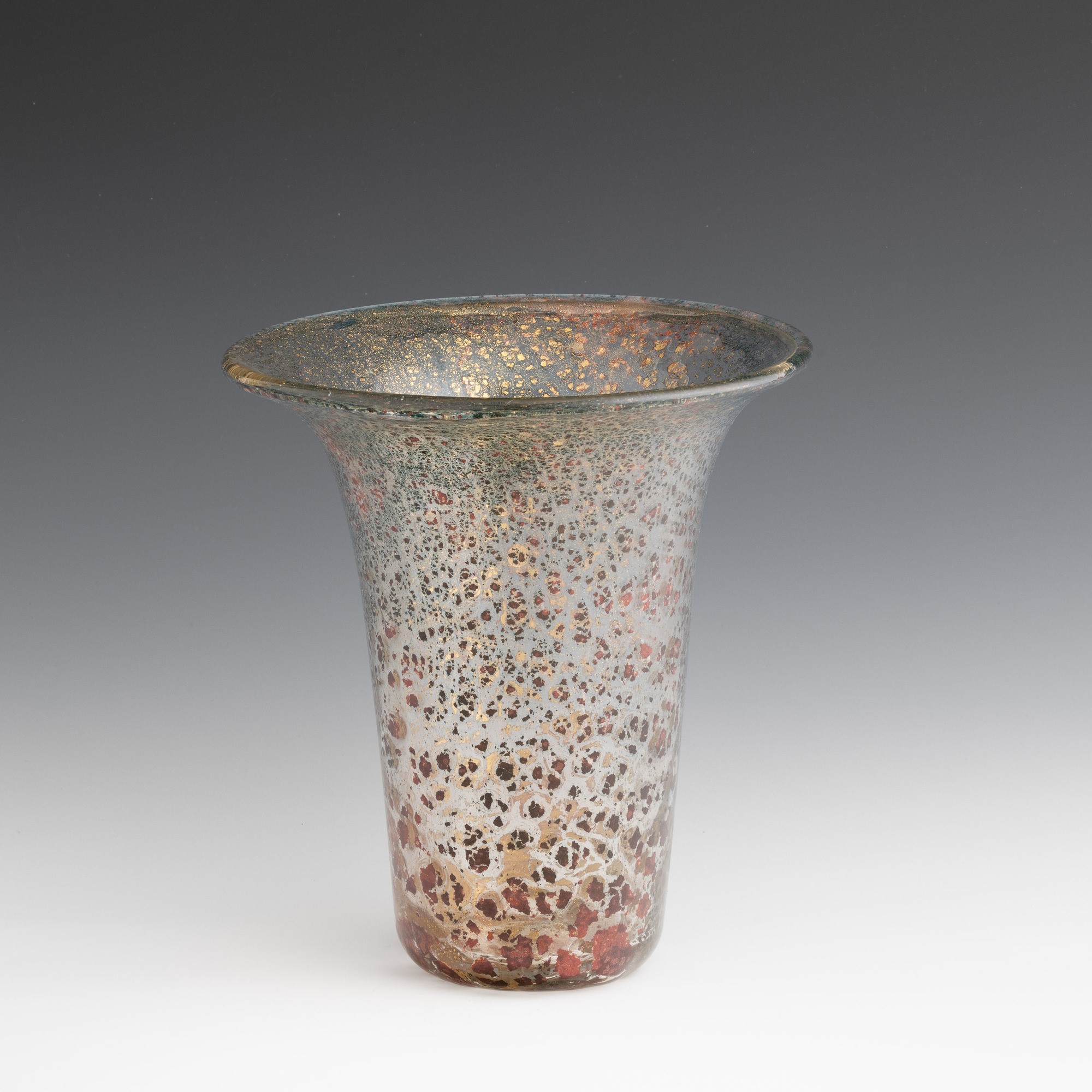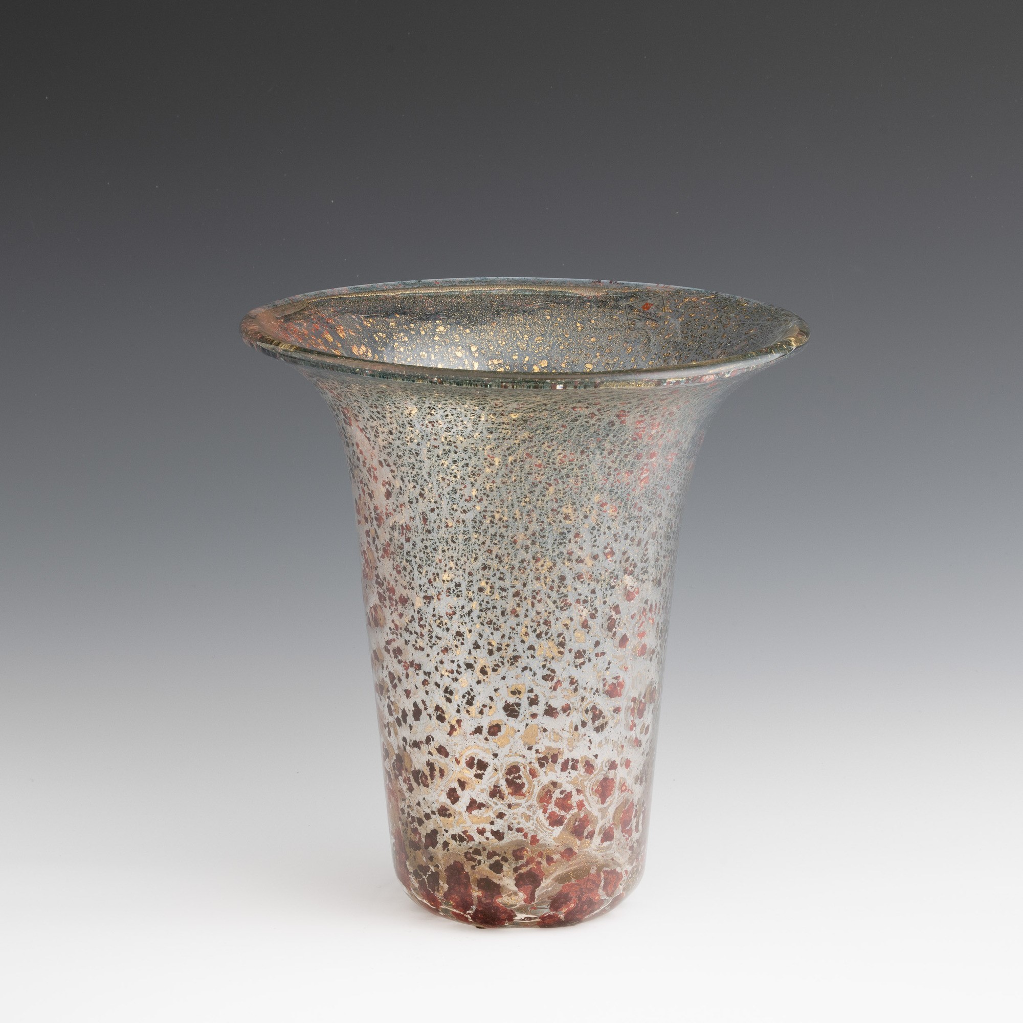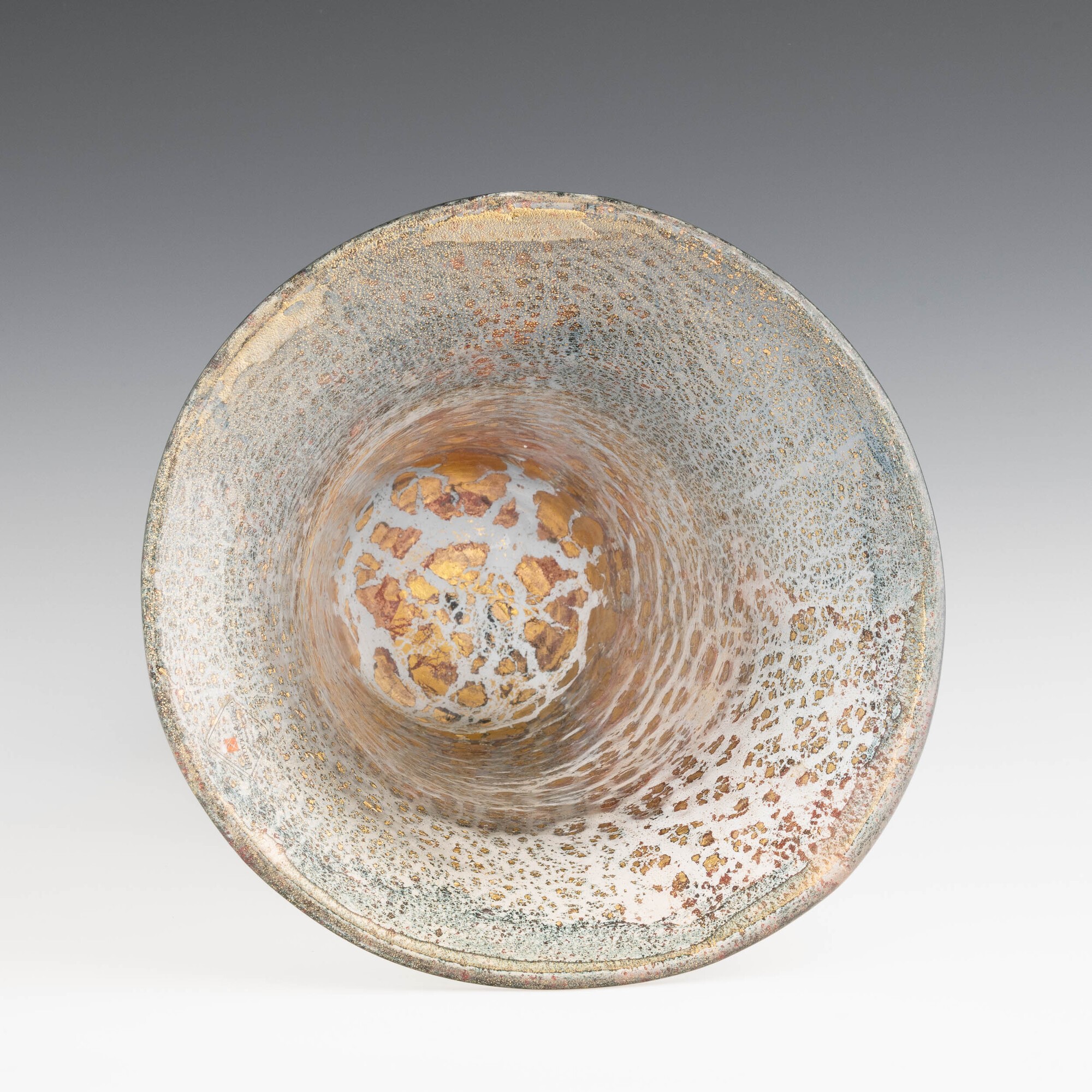 Porpora Oro series bell vase in blown glass with gold leaf and polychrome foil inclusions.