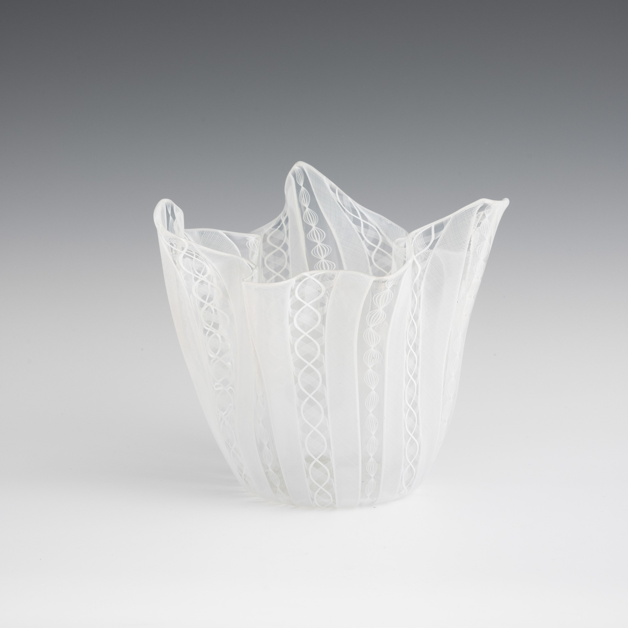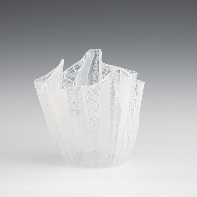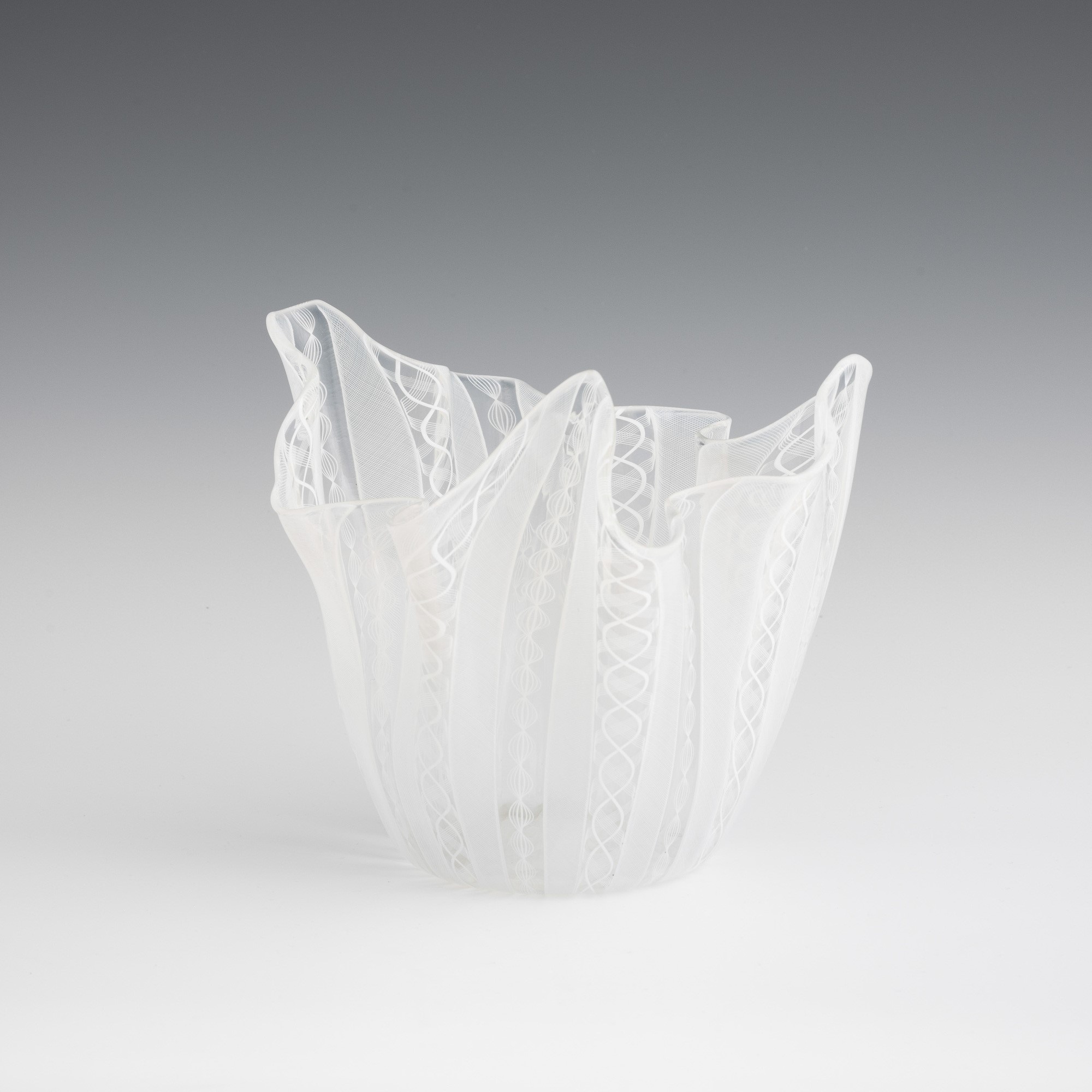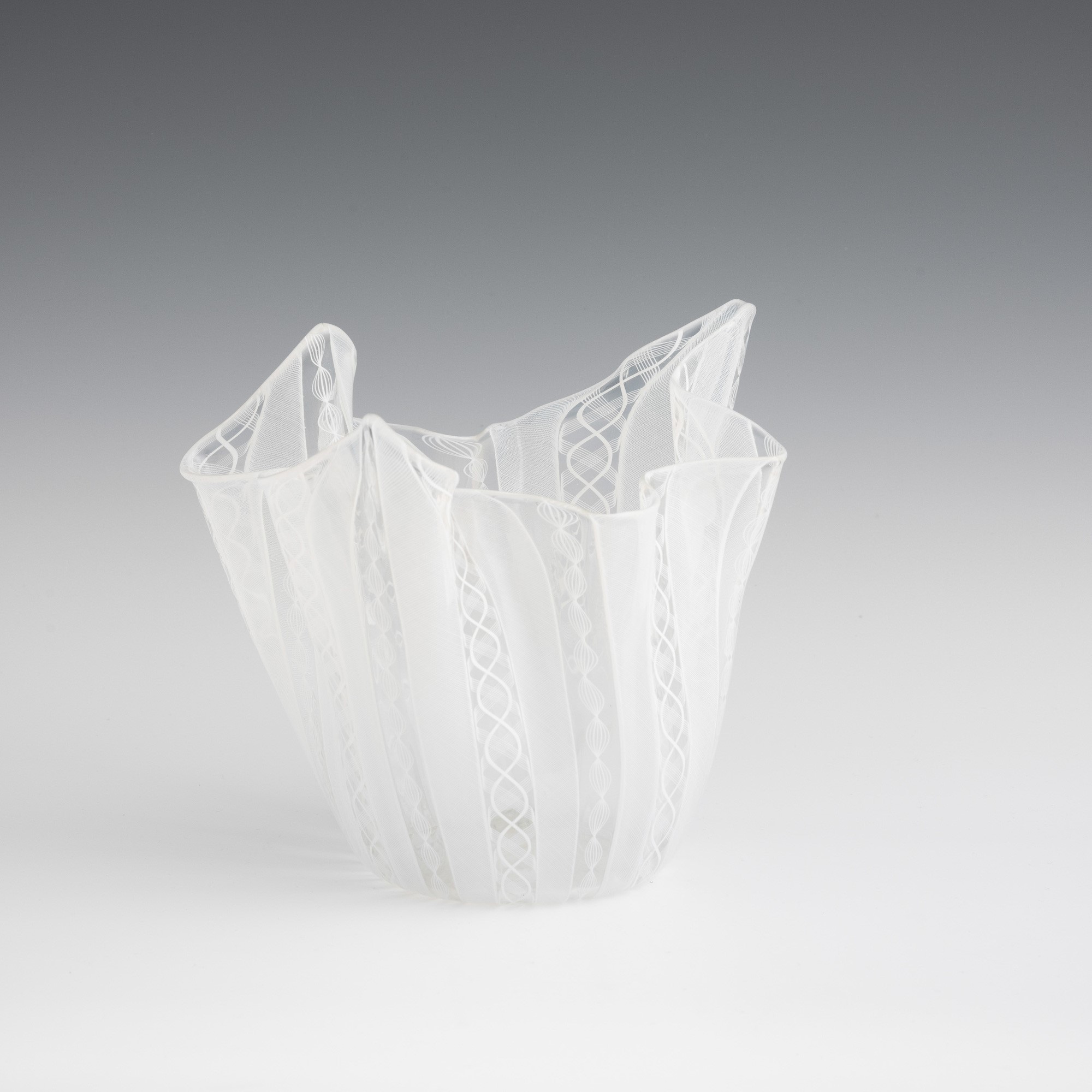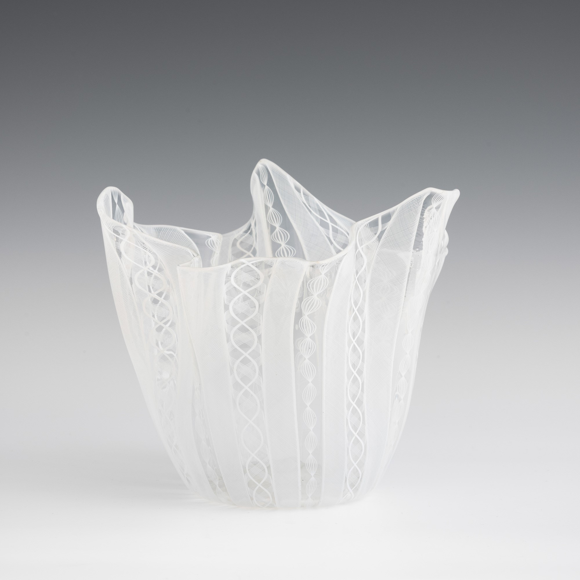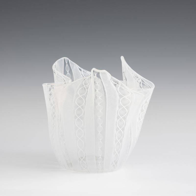 Handkerchief vase in blown glass with 'zanfirico', 'reticello' and twisted cane decoration.