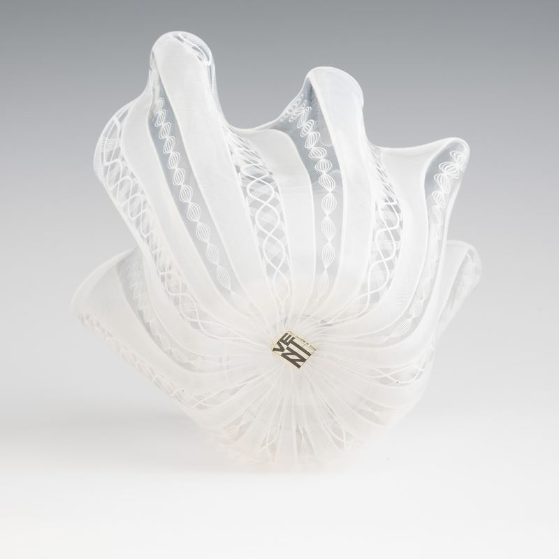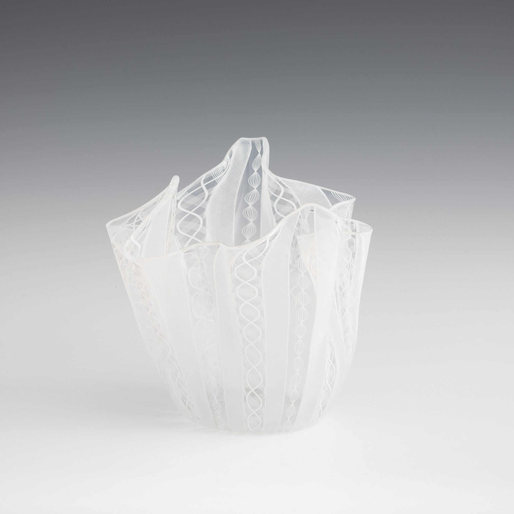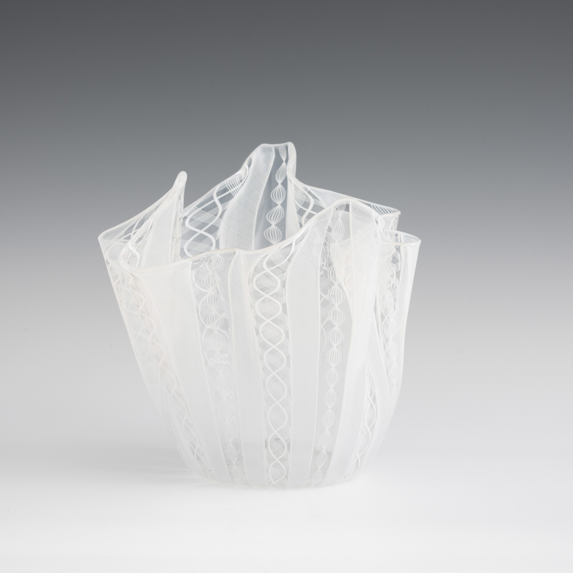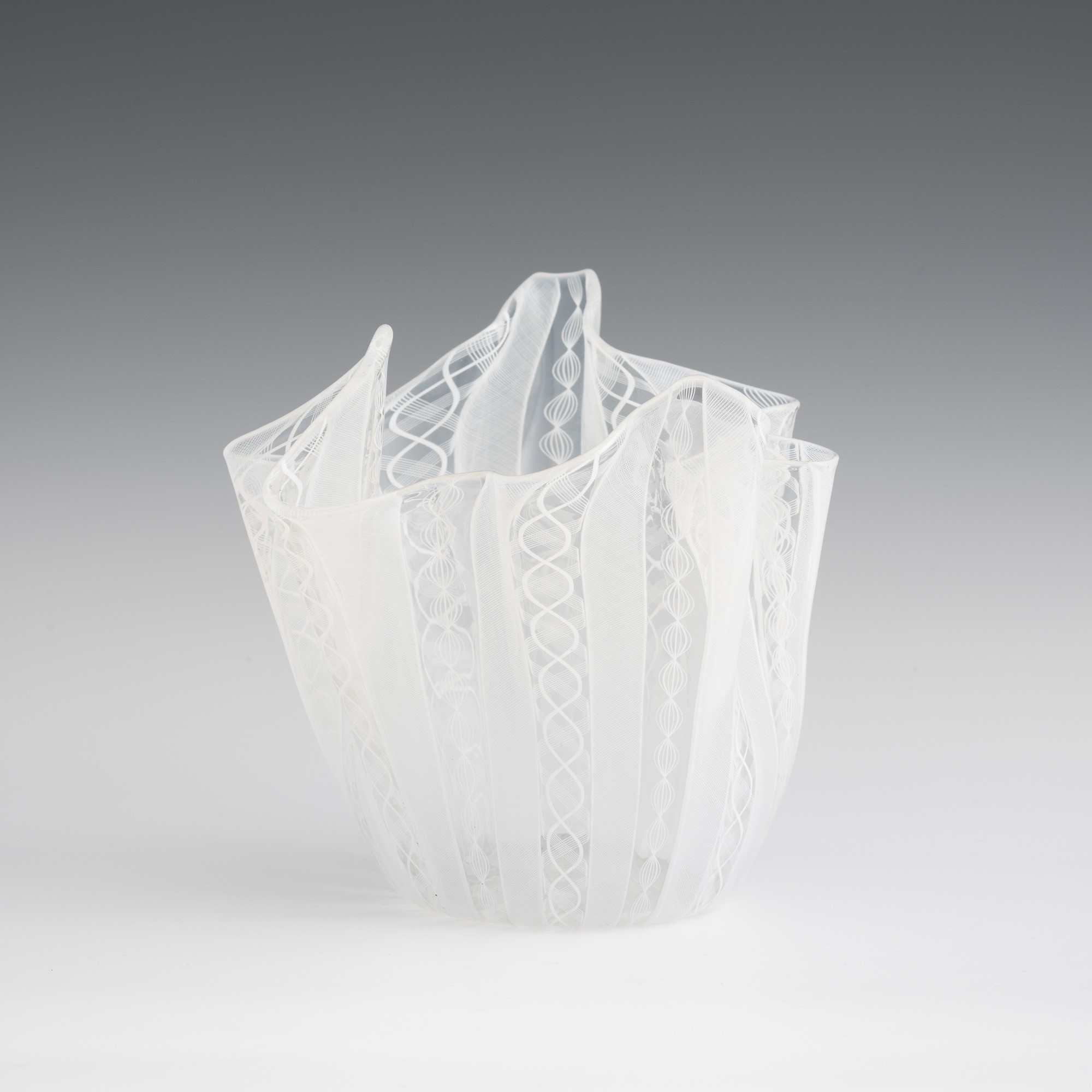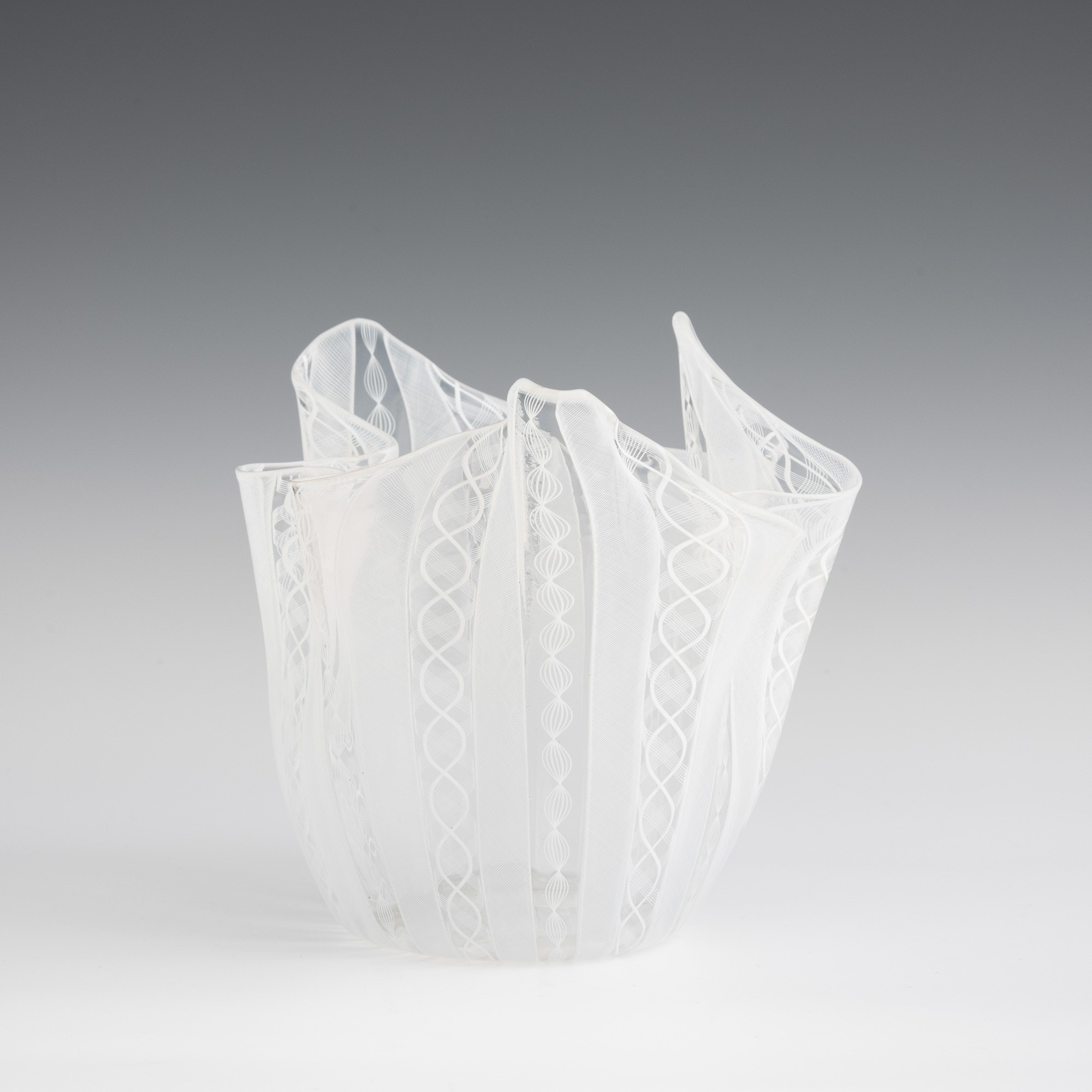 Handkerchief vase in blown glass with 'zanfirico', 'reticello' and twisted cane decoration.