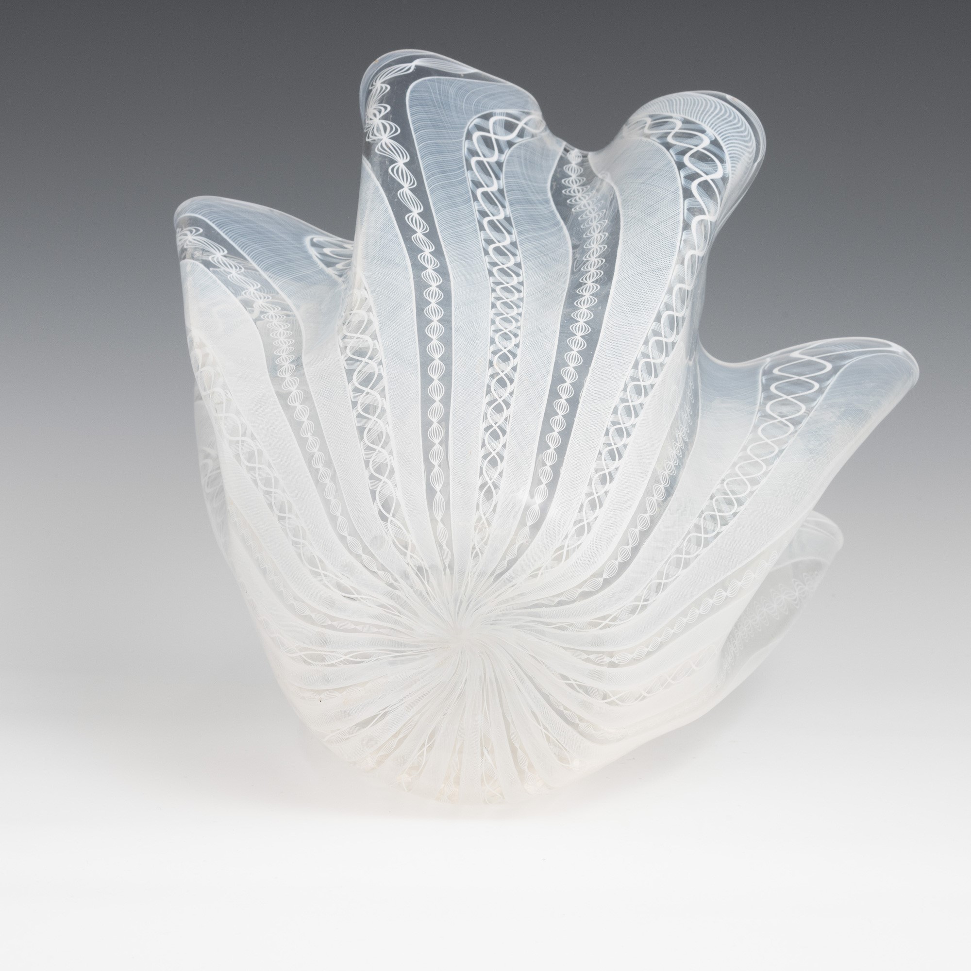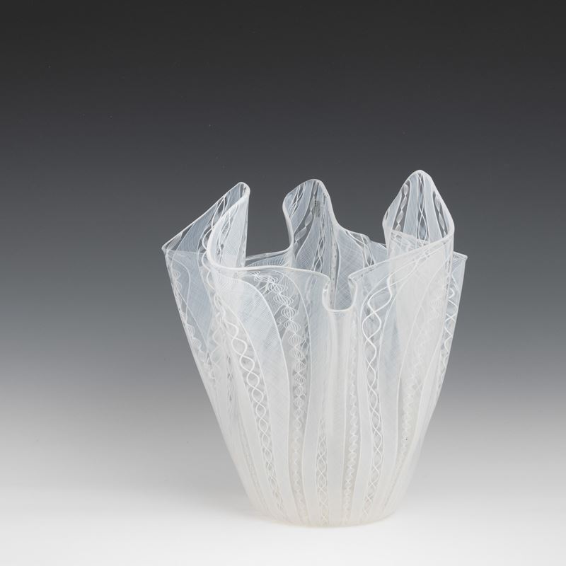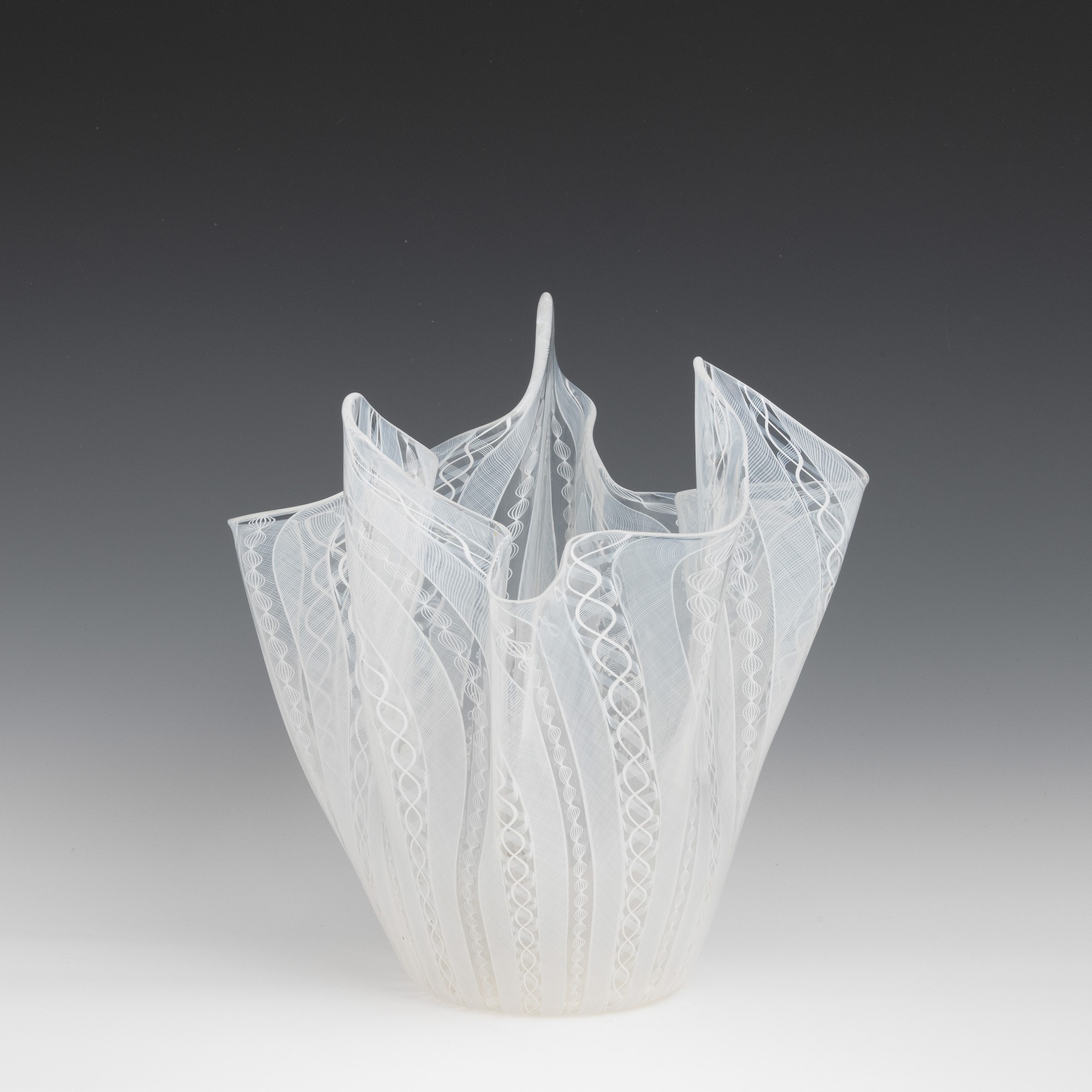 Large handkerchief vase in blown glass with 'zanfirico', 'reticello' and twisted cane decoration.