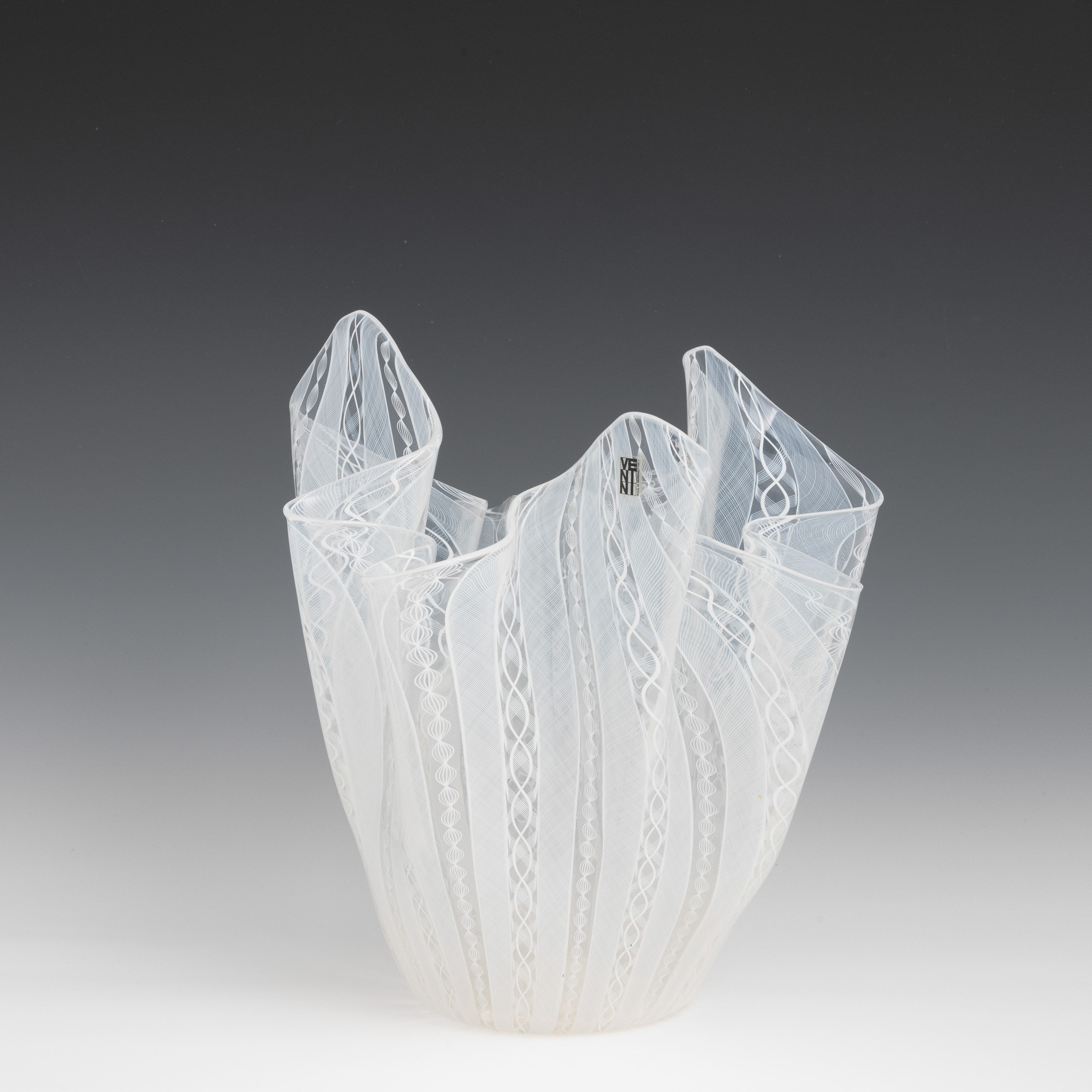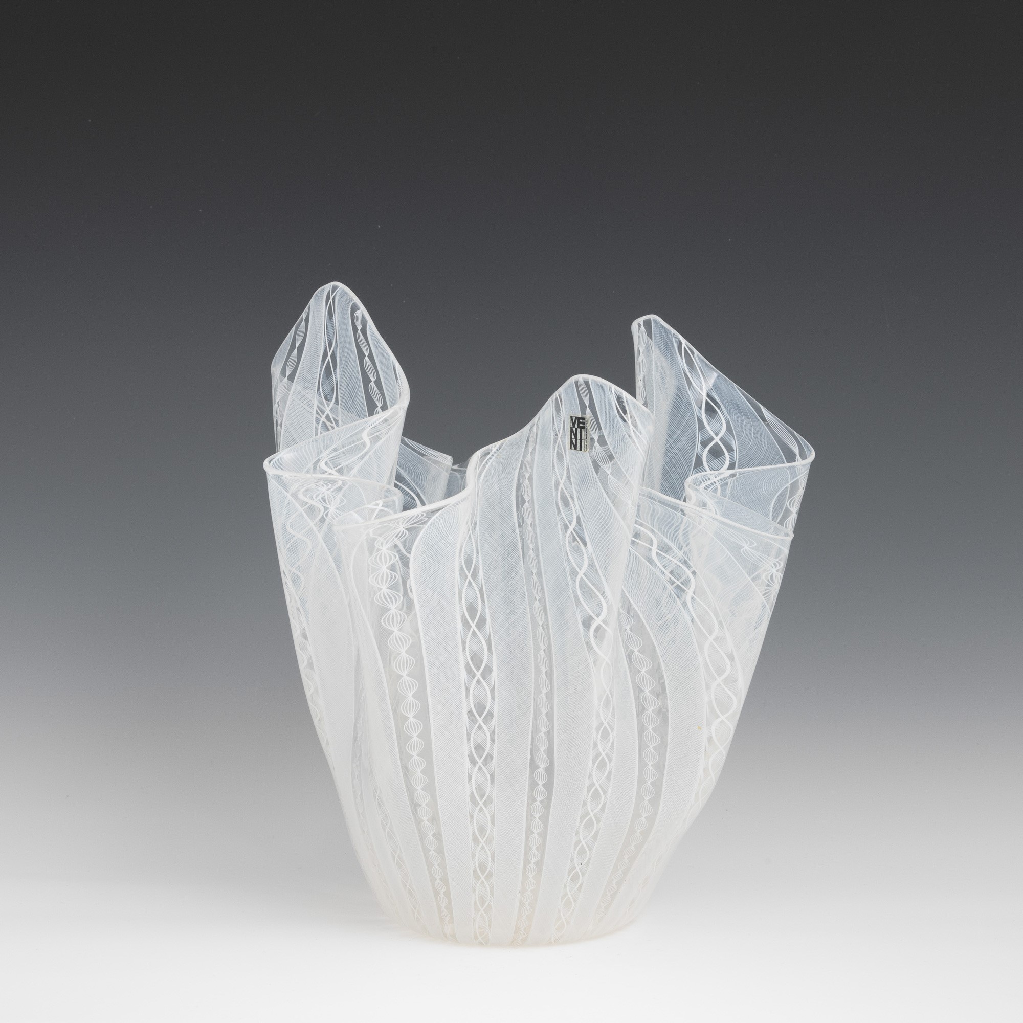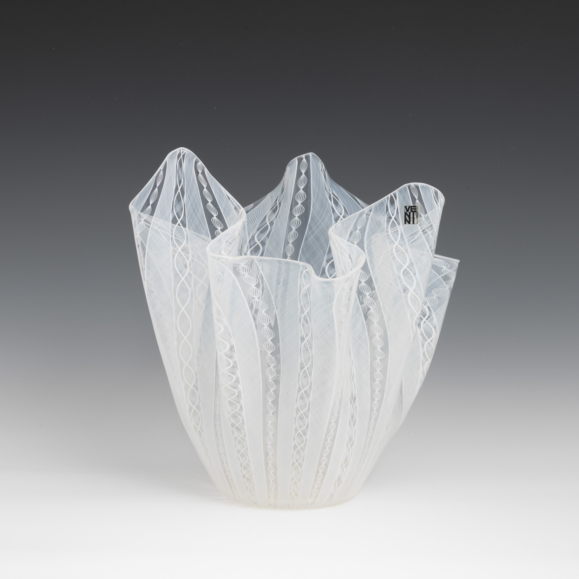 Large handkerchief vase in blown glass with 'zanfirico', 'reticello' and twisted cane decoration.