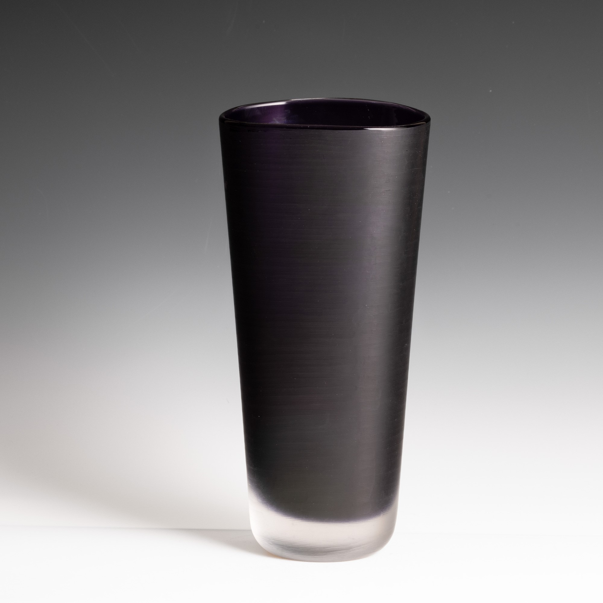 Incisi series oval section truncated cone vase in sommerso glass with ground surface throughout.