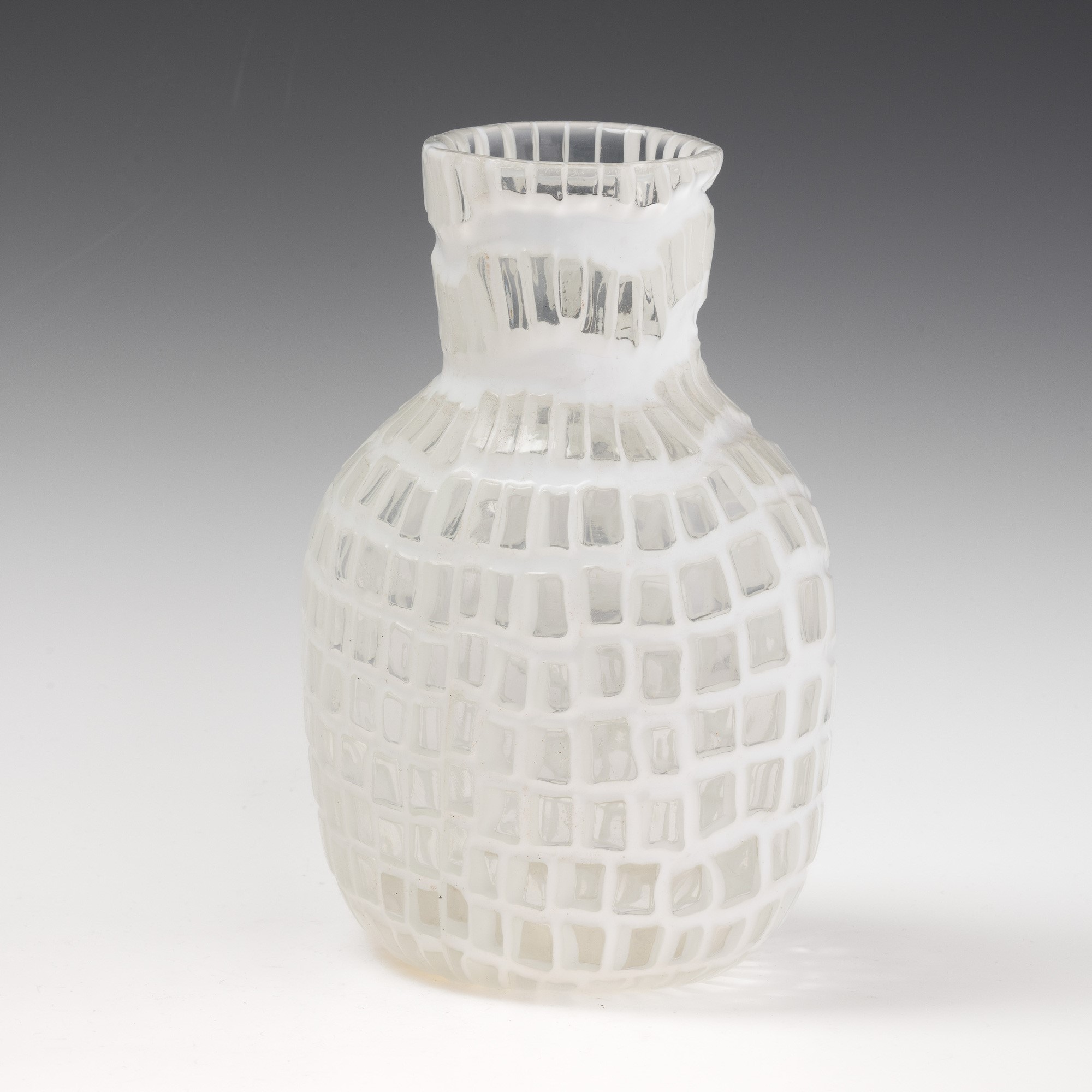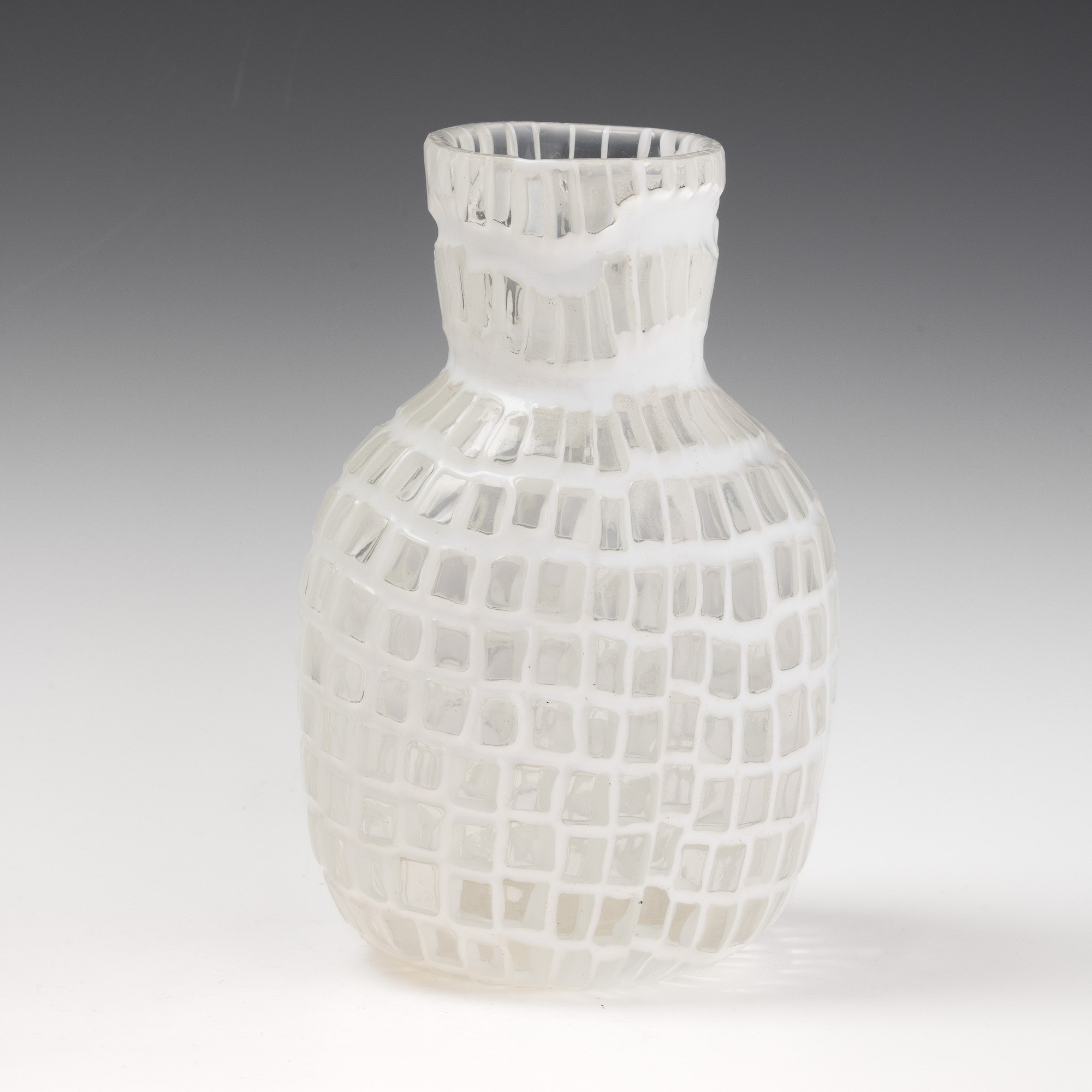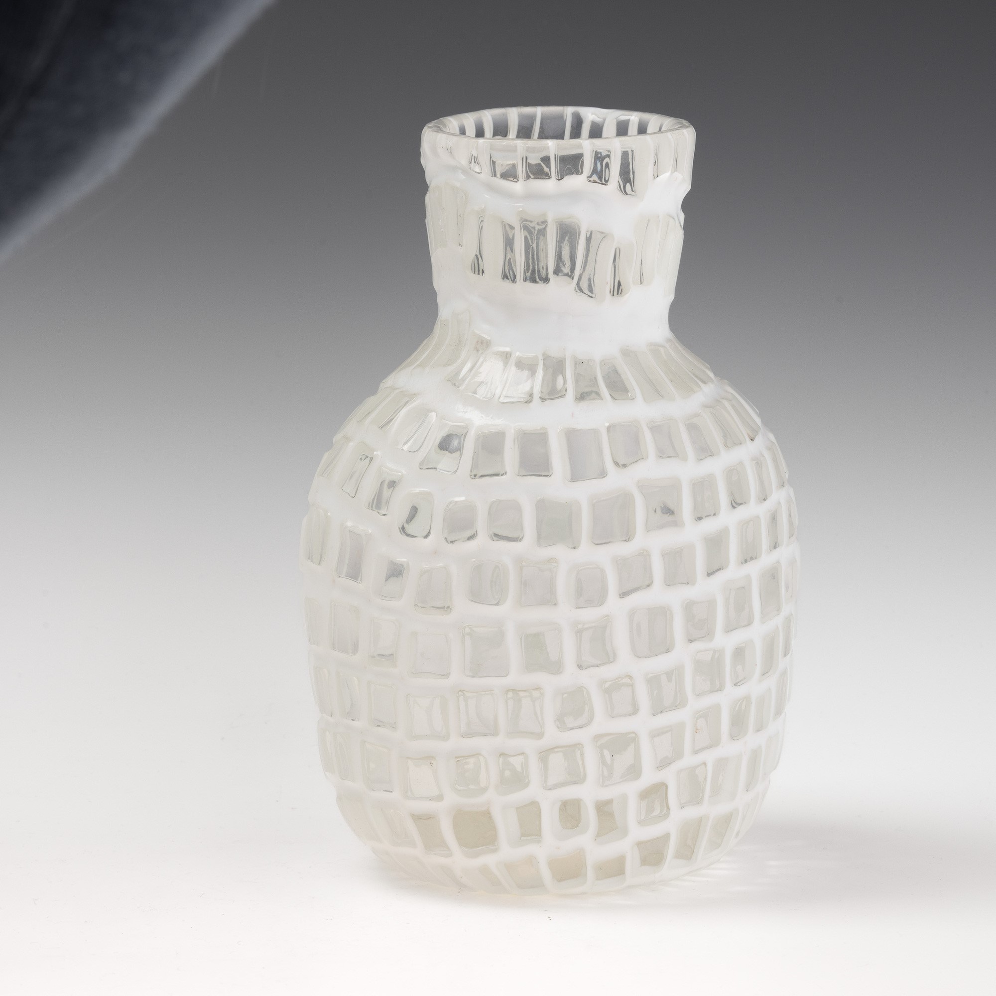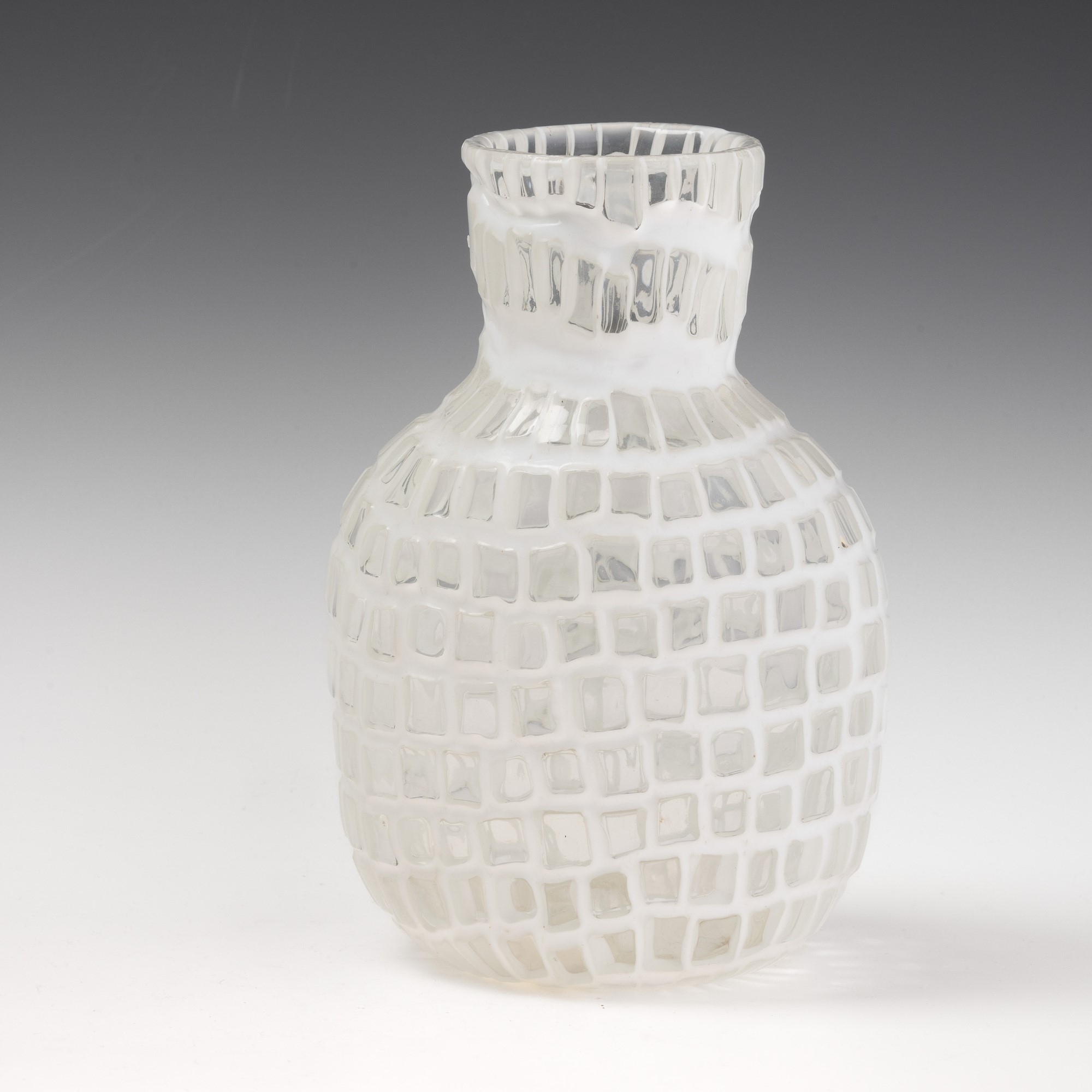 Occhi series vase in blown glass decorated with crystal murrines with 'lattimo' (milky) edges.