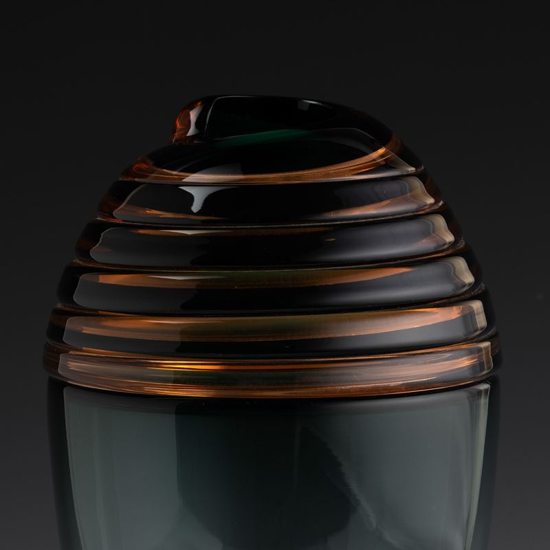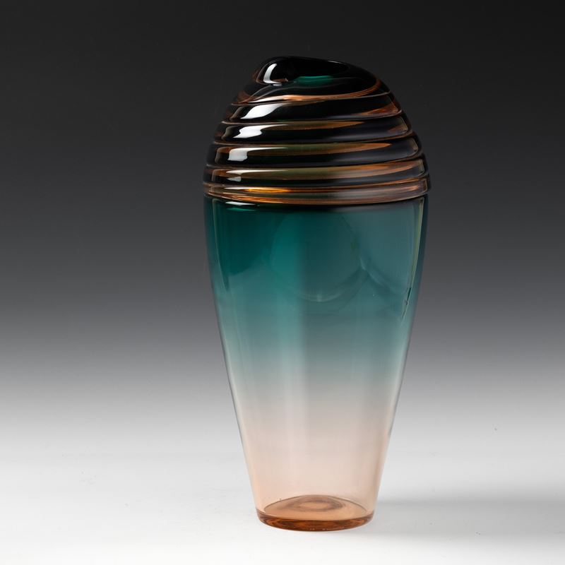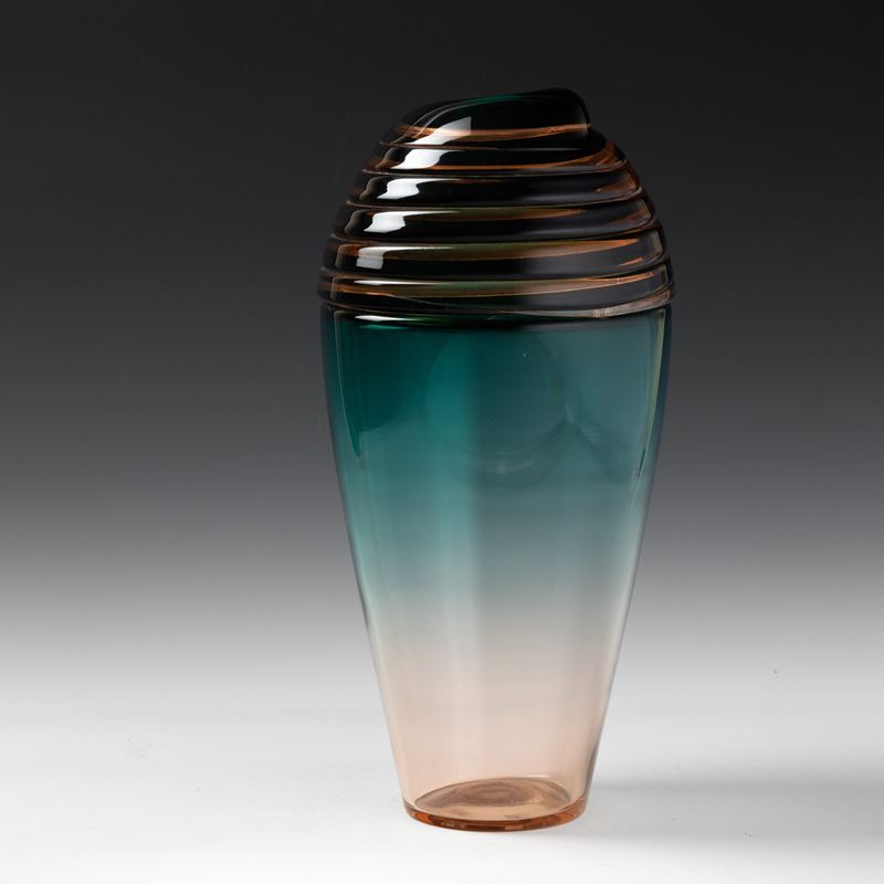 Vertigine series baluster vase in blown glass decorated with spiral 'incalmo' band.