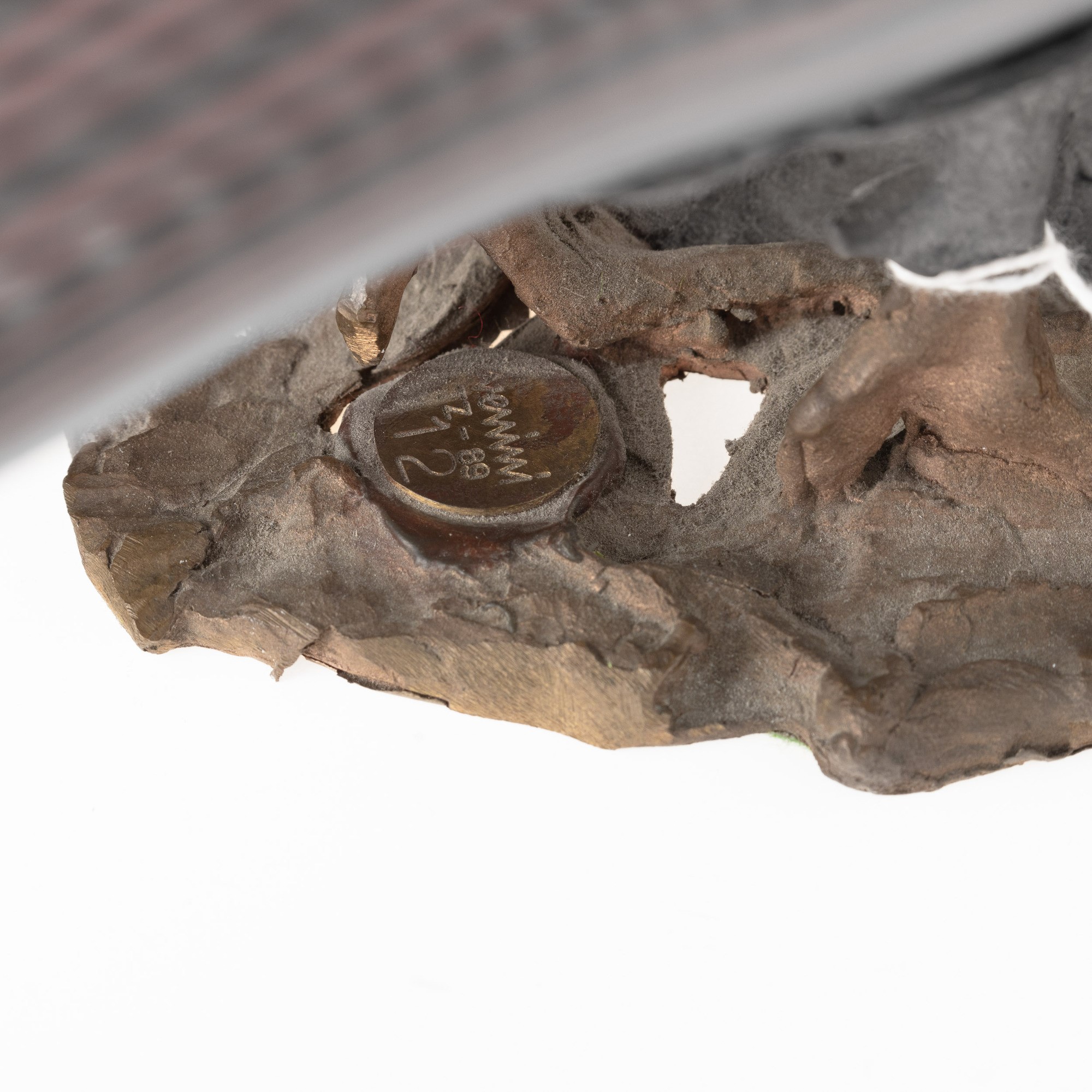 Support base and feet in patinated cast bronze.