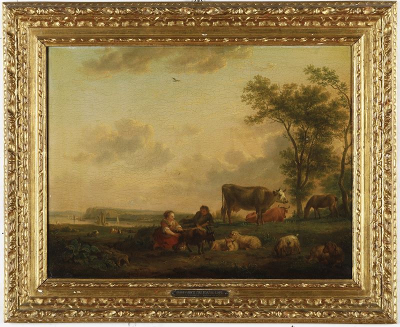 Paesaggio con coppia di pastorelli e armenti