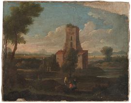 Scuola del XVIII secolo Paesaggio con contadini