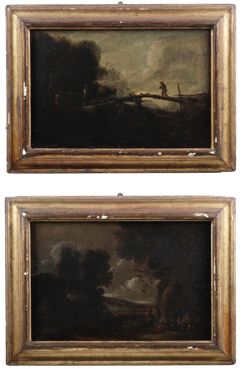 Scuola della seconda metà del XVII secolo Paesaggi con figure