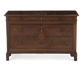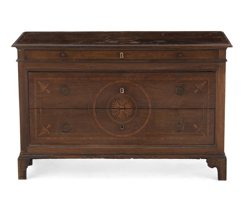 Cassettone lastronato, filettato e intarsiato. Piacenza (?),fine XVIII secolo