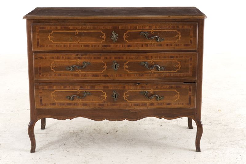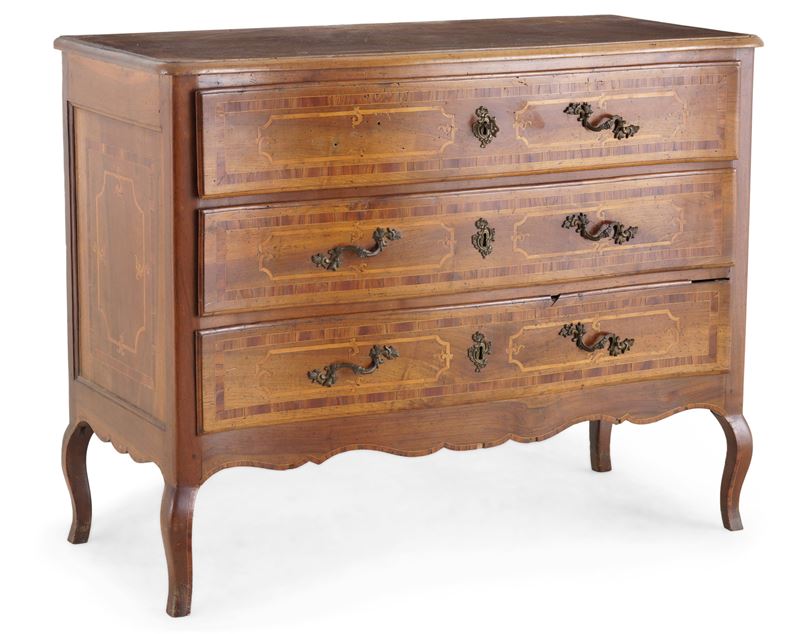 Comò in legno lastronato e filettato. Emilia, XVIII secolo