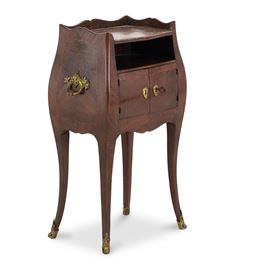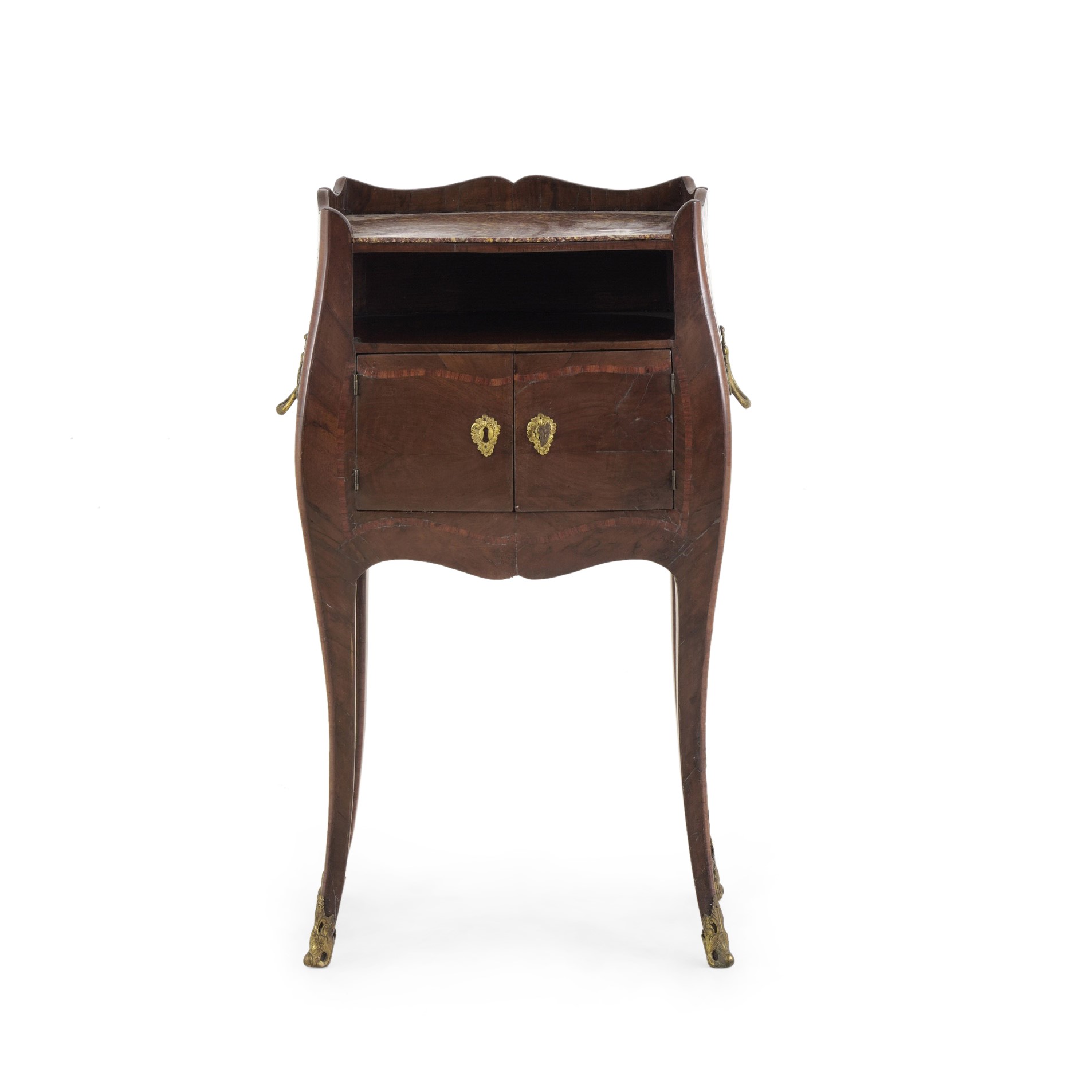 Fronte con due sportelli e vano a giorno, piano in marmo, bordo sagomato, gambe mosse