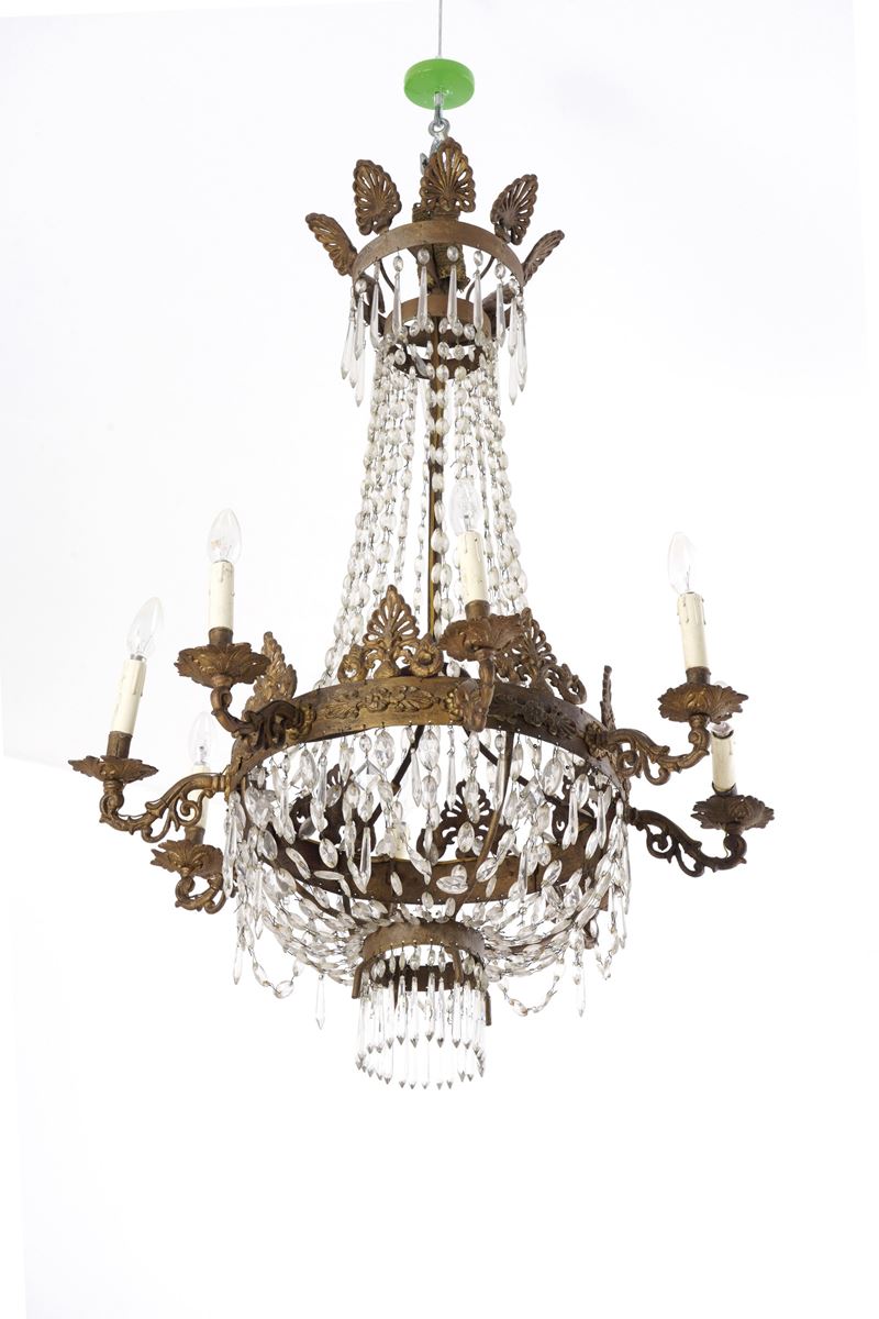 A otto luci, elementi in metallo con decoro fitomorfo