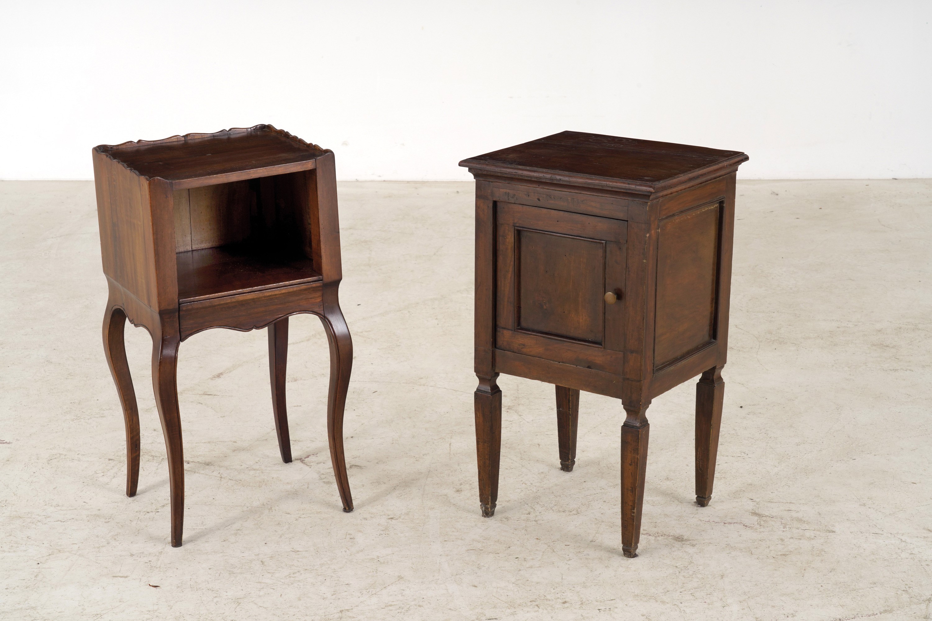 Uno a giorno in stile Luigi XV con gambe mosse, l'altro in stile Luigi XVI con gambe rastremate e uno sportello sul fronte